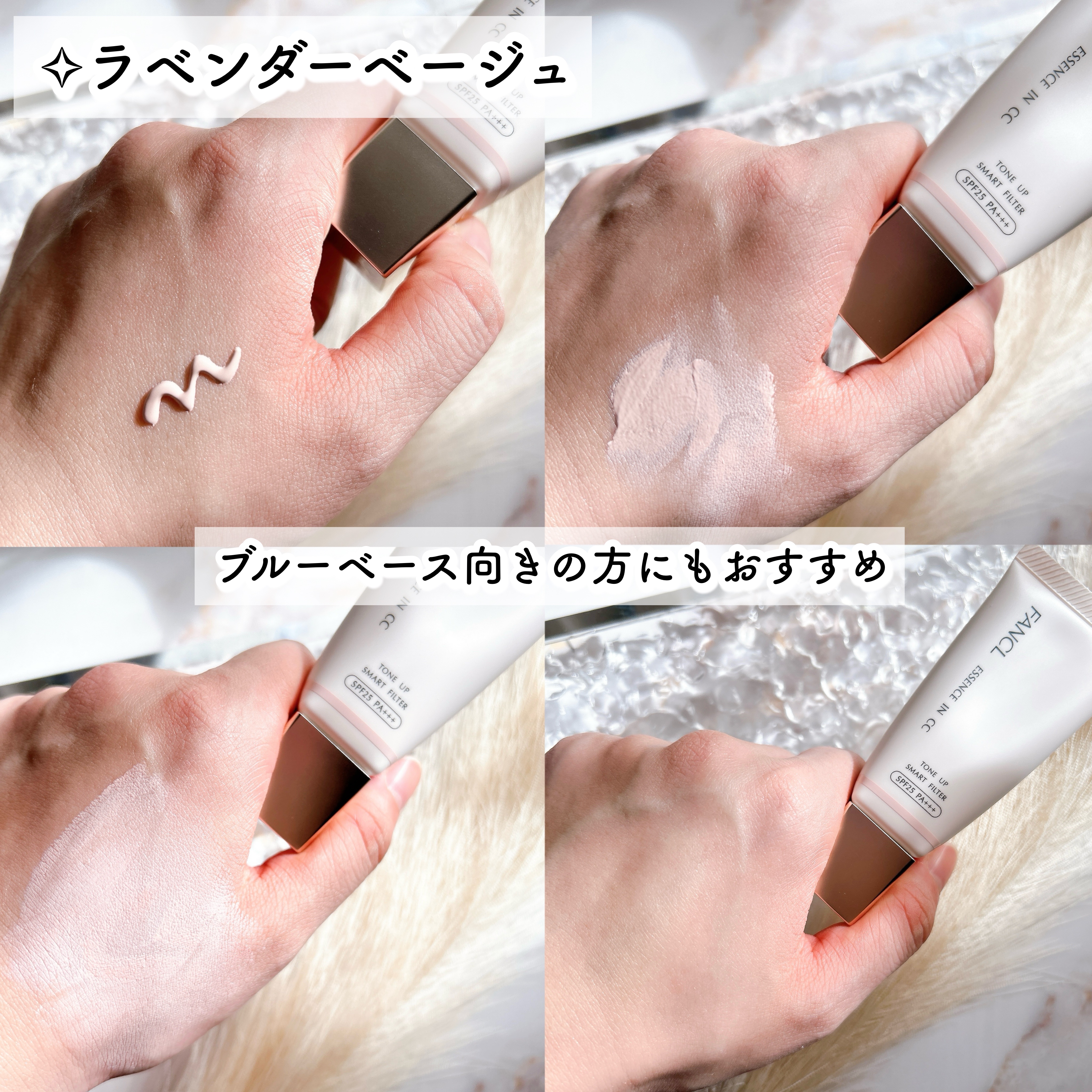 ノーファンデで肌を開放!透けツヤ肌に仕上げる エッセンスインCCクリーム登場✨ 素肌感のある透けツヤ肌に仕上げる CCクリームだよ🫶🏻 私は黄ぐすみが気になるブルベなのでラベンダーベージュがお気に入り♡