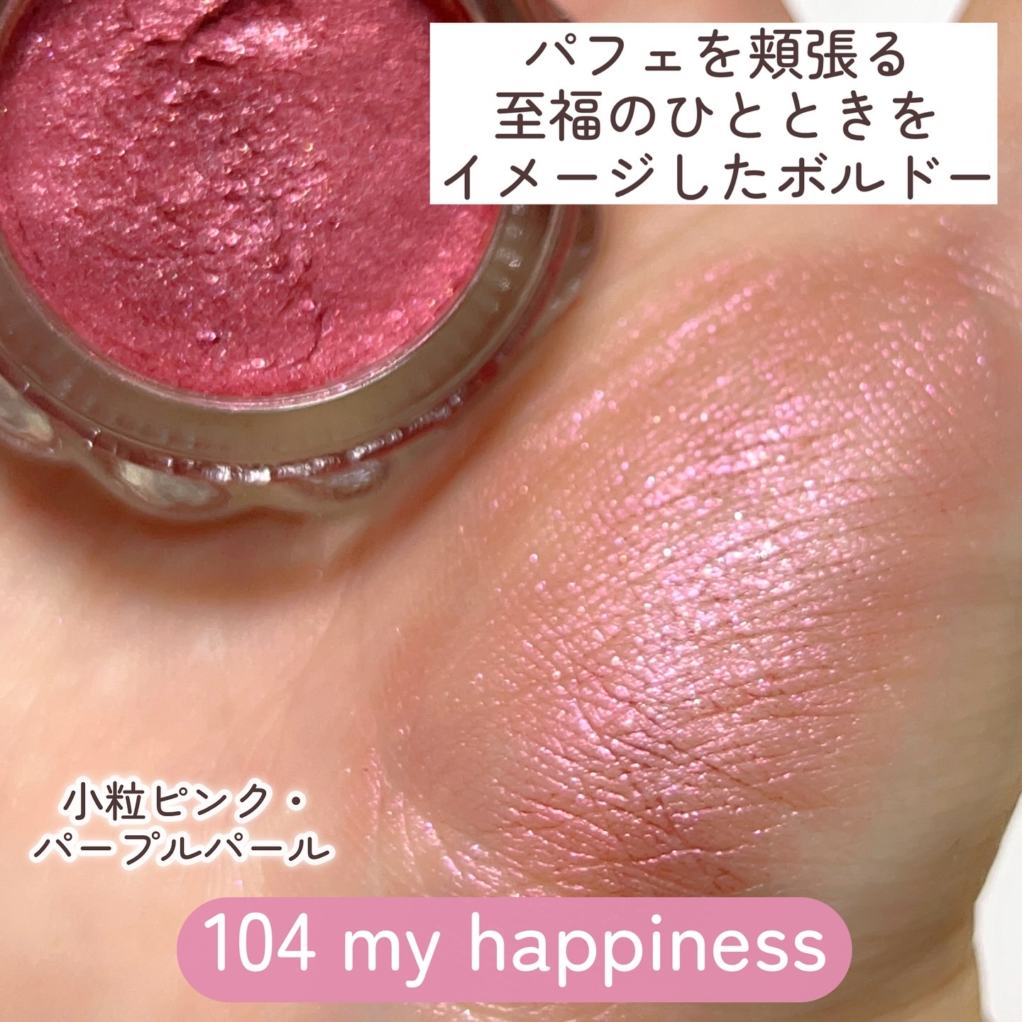 しっとりなめらかな粉質で、肌に光が溶け込む。 ツヤの美しさや発光具合は写真の通り。 ひと塗りで極上の艶を纏うことができます。 私が1番感動したのは 03 パールグロウ 水色やパープルをはじめとした細かいラメがぎっしり。 まるでダイヤモンドのような輝きでこれが最高💎 いざ肌に乗せると透明感たっぷりで白浮きしません。 今日アイシャドウとして使ってみたらまぶたが濡れたように艶めいて最高だった!! ラメ大好き芸人のみなさんは絶対チェックして欲しいです。 パケもしっかり可愛いです♡ 中身も見た目ももはや無敵。 これ、買わない理由ある??