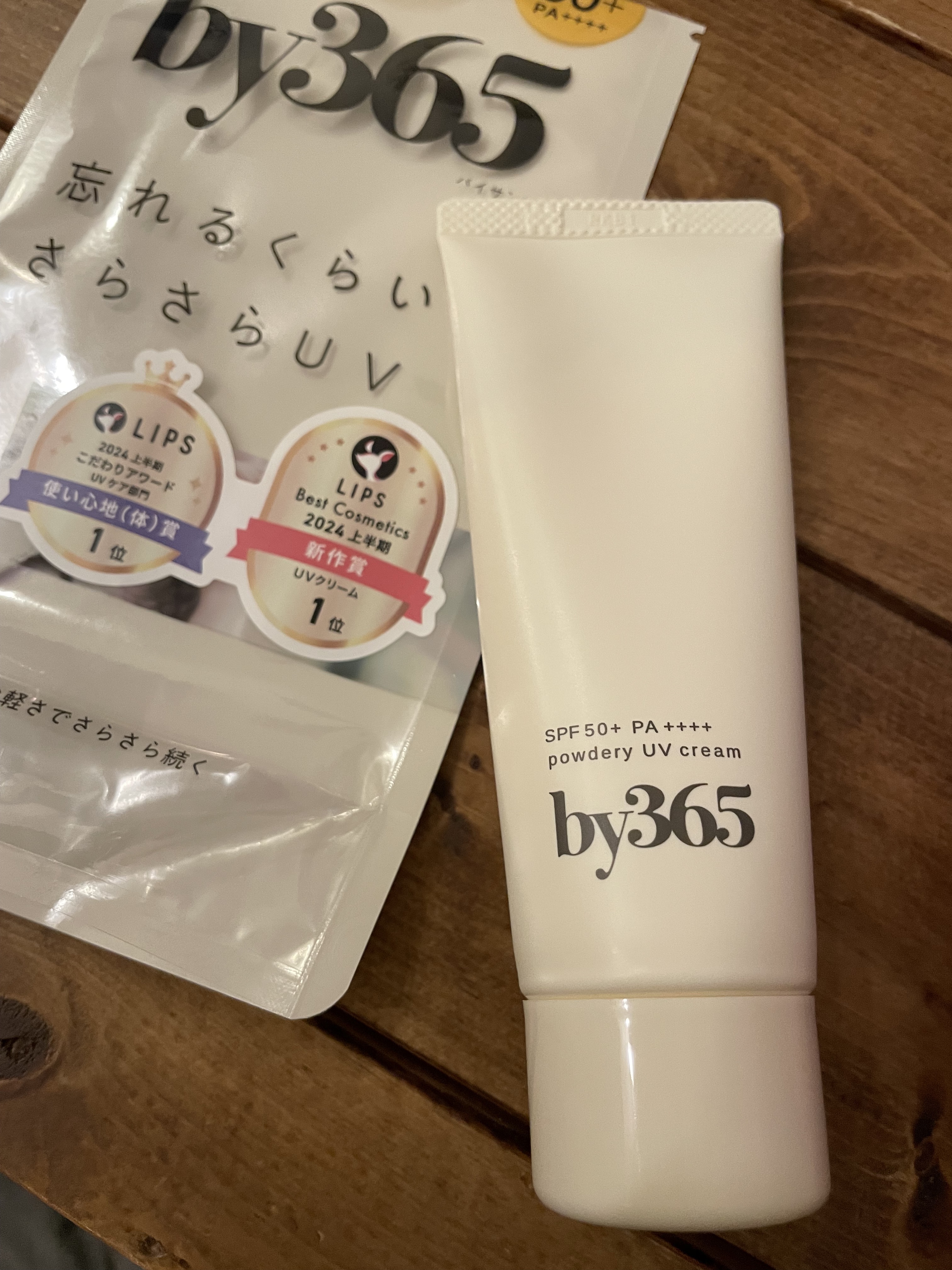 \by365パウダリーUVクリームトーンアップ/化粧下地としても使えるSPF50の頼もしい日焼け止めクリーム💛やや固めのテクスチャーですが肌に塗っていくとスーッと伸びていきます。ベタベタすることなく、パウダーを塗ったみたいにさらさらした質感な...