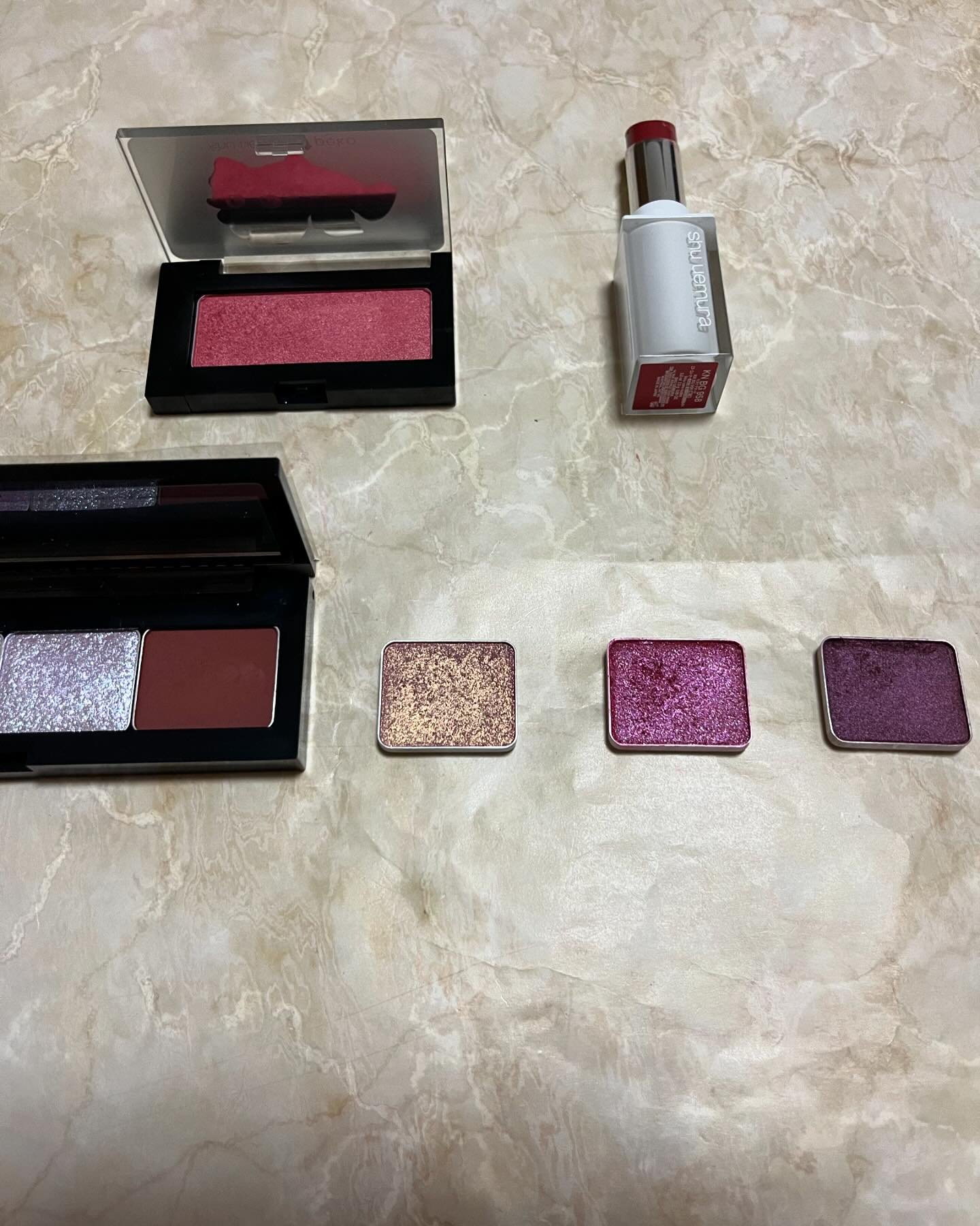 シュウウエムラの単色アイシャドウパープル系寄せ集めパレット💜✨ 公式ポイント交換やら楽天ポイントやらでコツコツ単色アイシャドウを買いだめしておりました😇 Mミディアムレッド189はもう廃盤で在庫あるのみ!ラストワンを買わせていただきました👍 ラベンダーレインハイライターは今年5月のアンドウ・ヒロ コラボの限定ハイライト! 上品なパールの輝きがどんなメイクにも合うので使用頻度高めです☆