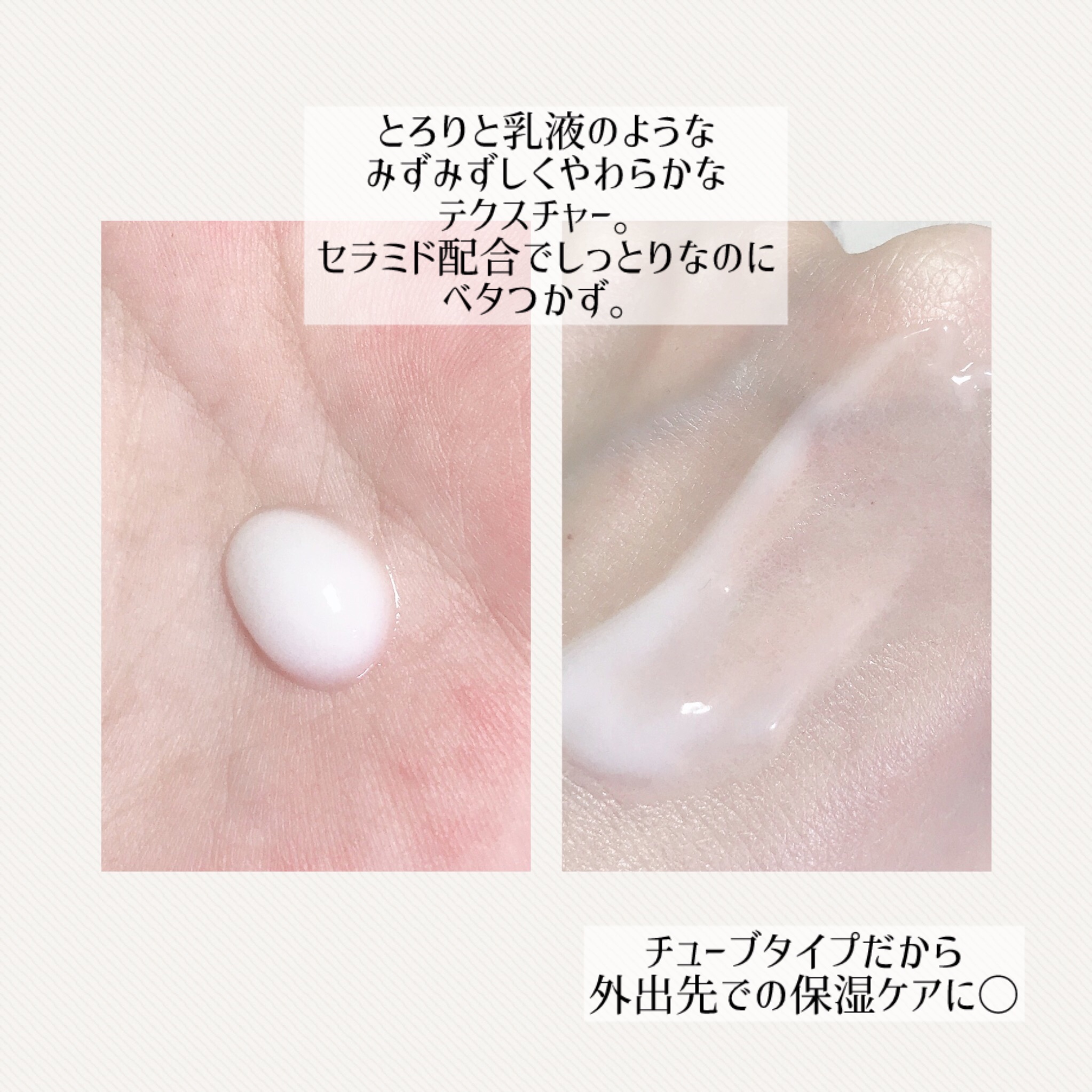 | テクスチャーは思っていたよりサラッとしていて、 のばしやすくべたつかない心地よい使用感。 | 詳細を見る | ||