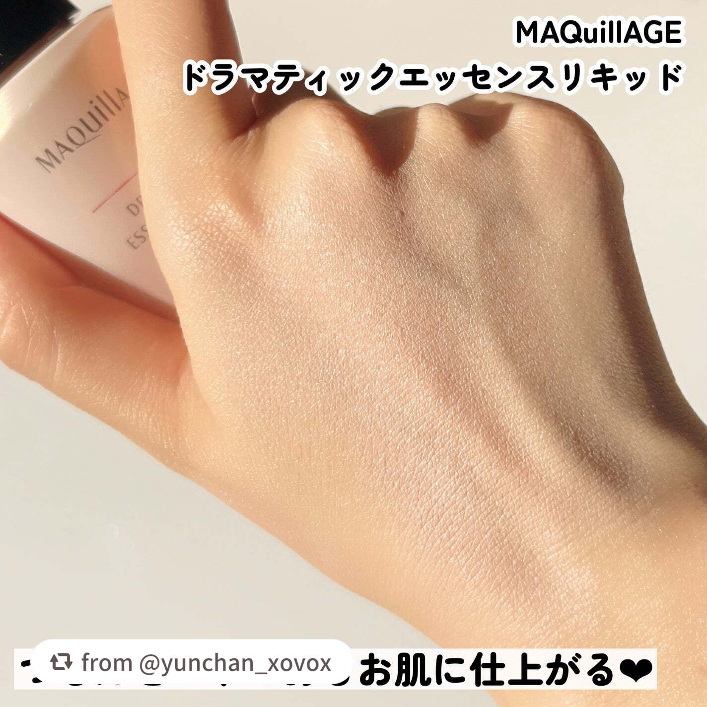 - カバーだけじゃない。極上つるん肌。毛穴レス美容液リキッドファンデ SPF50+・PA++++ ○乳化技術と美肌効果と浸透型美容液が三位一体となり、マキアージュ史上最高の美肌が叶うリキッドファンデーションです。 ① フルカバー×スキンケア乳化技術 └毛穴の凹凸にもピタッと密着。美容液を毛穴の奥まで届けながら、フルカバー ・保湿成分や油分のべたつきを感じさせず、なめらかな使用性を実現 ② ラスティング美肌効果 └毛穴・色ムラをフルカバーしながら、時間が経ってもくずれず、つけたての仕上がりが 長時間 持続 1 ・毛穴の凹凸を補正しながらつるんとした肌に見せる-毛穴レスつやパウダー ・カバーと透明感を同時に叶える-360 °美肌パウダー ・マスクをしていてもくずれにくい-ラスティングコート成分 ※1 13 時間化粧もち 毛穴の目立ちのなさ・つや・透明感・カバー力・化粧くずれのなさ データ取得済み 当社 調 べ。効果には個人差があります。 ③ 浸透型うるおい美容液 └長時間保湿持続。毛穴の奥までうるおいを届ける-グリシルグリシン ・グリセリン 整肌・保湿 ・たっぷりのうるおいで満たしつやのある肌に-ウォータリーキープエッセンス (ウォーターリリーエキス・スーパーヒアルロン酸(アセチルヒアルロン酸Na)・水溶性コラーゲン・グリセリン) 配合 ○1 回の使用量が分かりやすいディスペンサータイプです。 ○無香料、 ノンコメドジェニック・アレルギーテスト済 (全てのかたにニキビができない・アレルギーが起きないというわけではありません)