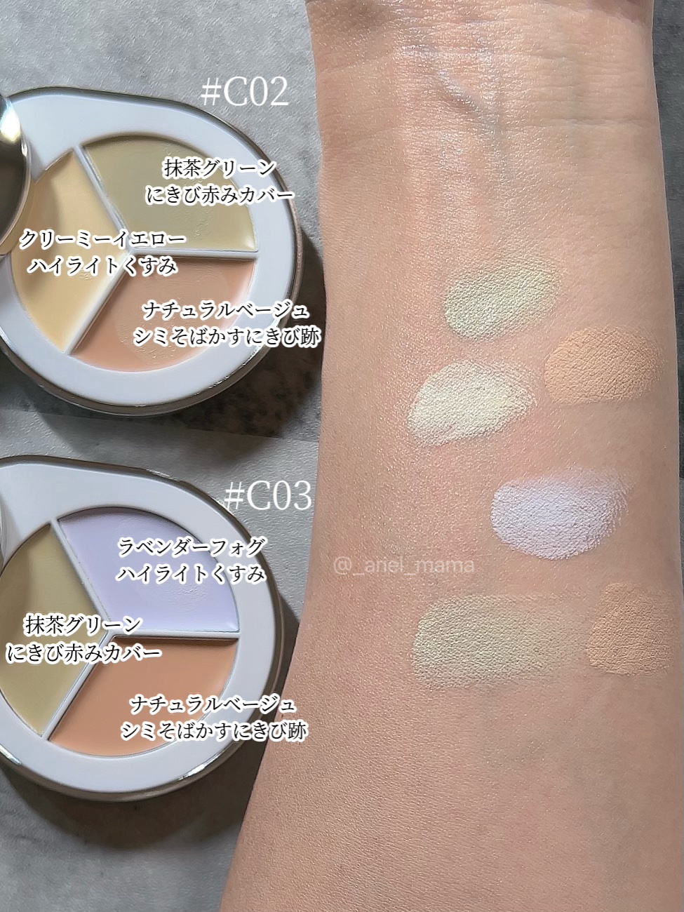 - 肌悩みに合わせた3つのタイプのコンシーラパレットです。 シミやトラブル跡などをカバーしてくれます。