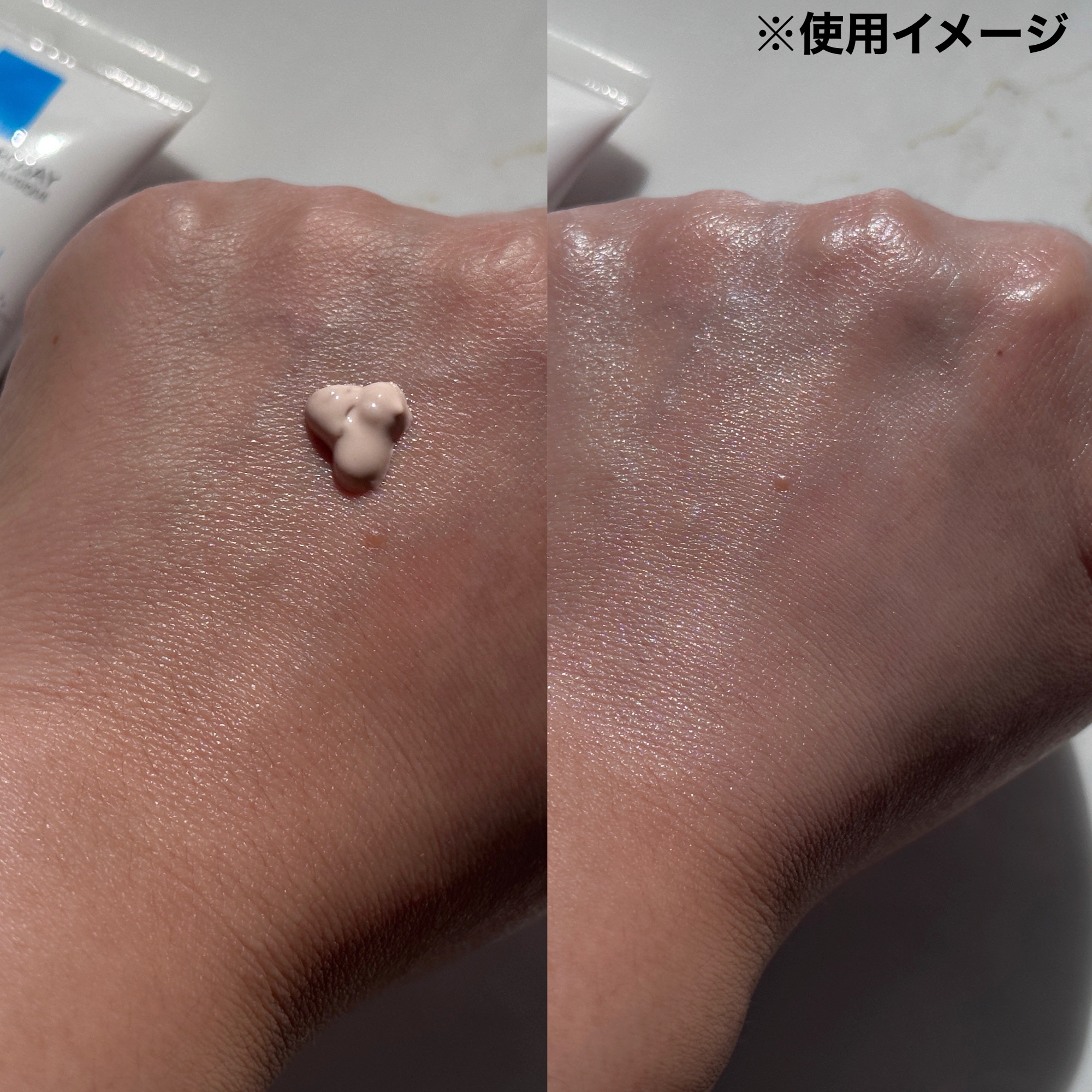 内側から発光してるみたいなツヤ感✨ 【ラ ロッシュ ポゼ/UVイデア XL プロテクショントーンアップ ローズ】 SPF50+/PA++++ スルスル滑らかに伸びる心地よいテクスチャー!! 密着感と保湿感があり、お気に入り◎ トーンアップローズはメイクアップ効果により、血色感を演出してくれる 仕上がりイメージです🌹