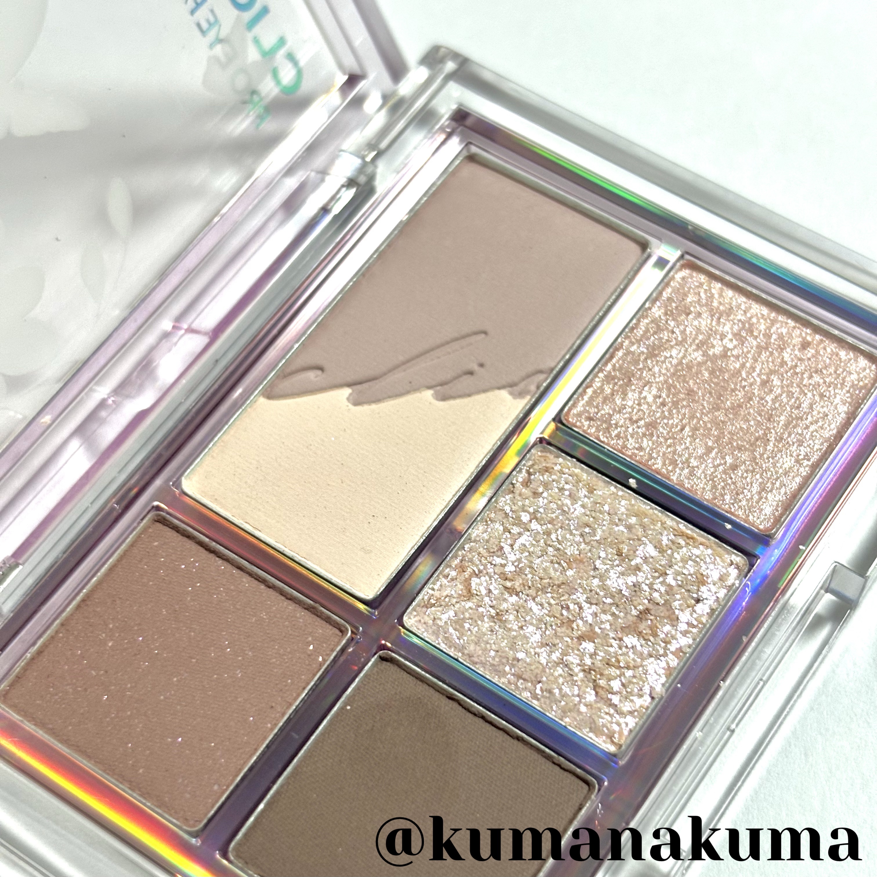 - 同系色陰影カラーと上品でクリアなグリッターの組み合わせの必要なカラーだけ詰め込んだミニアイパレット!