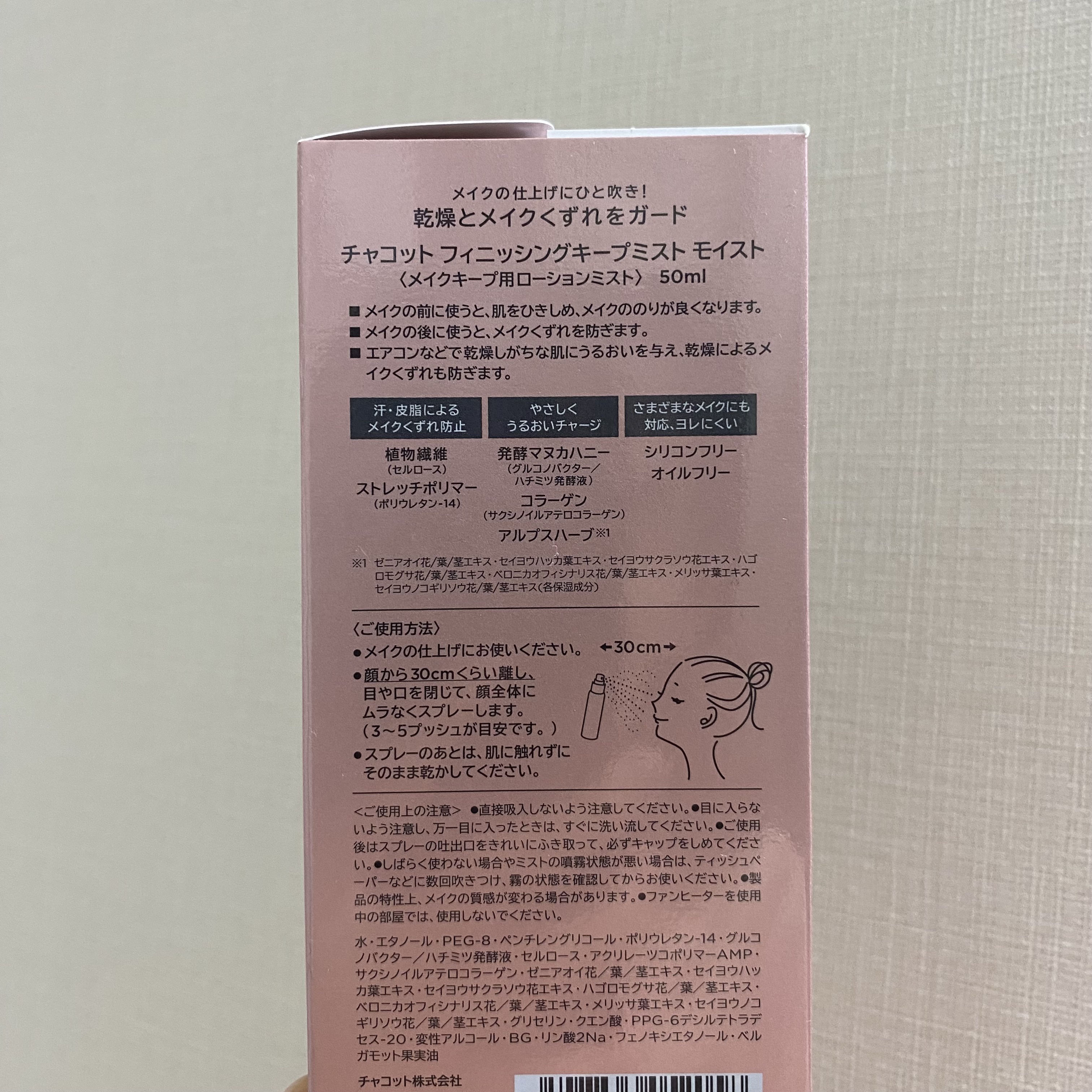 - <数量限定> メイクの仕上げにひと吹き!乾燥とメイクくずれをガード メイクの前に使うと、肌をひきしめ、メイクののりが良くなります。 メイクの後に使うと、メイクくずれを防ぎます。 エアコンなどで乾燥しがちな肌にうるおいを与え、乾燥によるメイクくずれも防ぎます。 ベルガモットの香り(精油) 汗・皮脂によるメイクくずれ防止*1 発酵マヌカハニーとコラーゲンでやさしい使い心地でうるおいチャージ*2 シリコンフリー・オイルフリー *1セルロース(耐水、耐汗性のある植物繊維)・ポリウレタン-14(伸縮自在のフィルム形成成分) *2グルコノバクター/はちみつ発酵液・サクシノイルアテロコラーゲン(全て保湿成分)