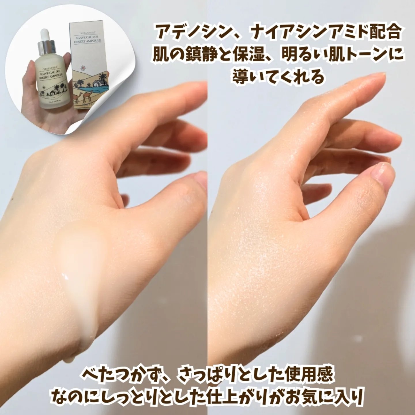 デザートローズエキスが90%以上配合されていて水分補給と鎮静ケアができるミスト化粧水💧 保湿力がすごい! なじませたあとのお肌はツルピカ✨️✨️ アデノシン、ナイアシンアミドが配合されていて肌トーンを上げつつ保湿と鎮静ケアもしてくれるアンプル💫