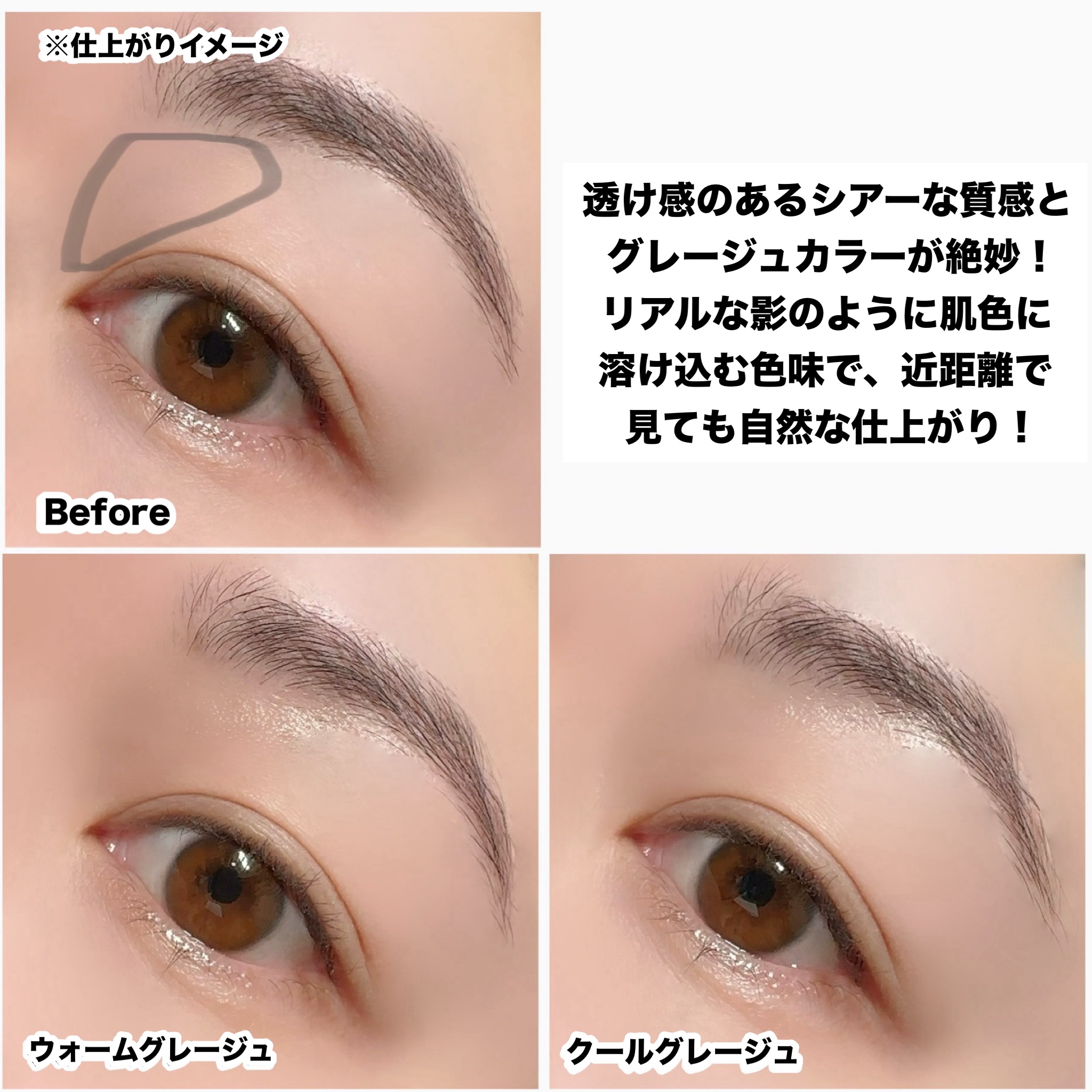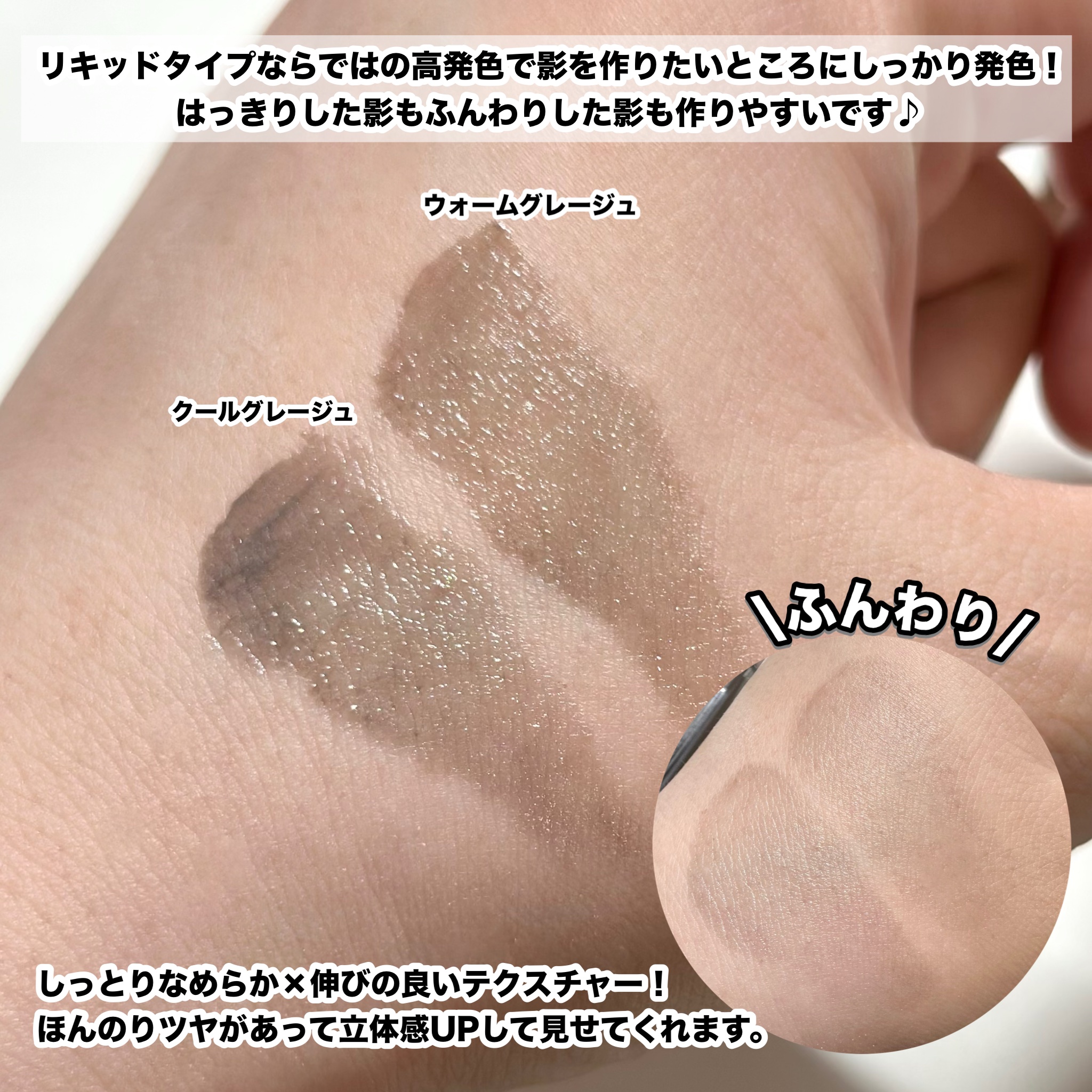 シリーズ累計400万本突破 リキッドタイプのシェーディングです💓💓 透け感のあるシアー質感と、影色に近いグレージュカラーで、肌に溶け込む自然な影を演出。 ロングラスティング設計で、汗・皮脂に強く、長時間キープ。