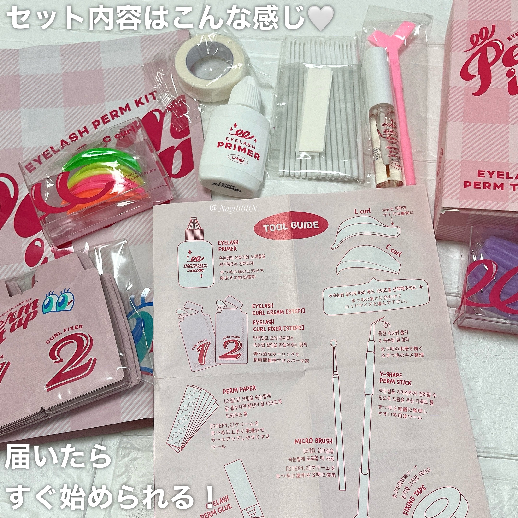 ずっと気になってたセルフまつげパーマに挑戦!「Perm it up」のキットを使って、初めてでも大成功👏💖 Cカール&Lカールのロッド付きで理想のカールが作れる! 最短30分で完了✨ 忙しい朝のメイク時間が短縮できるのも嬉しい♡