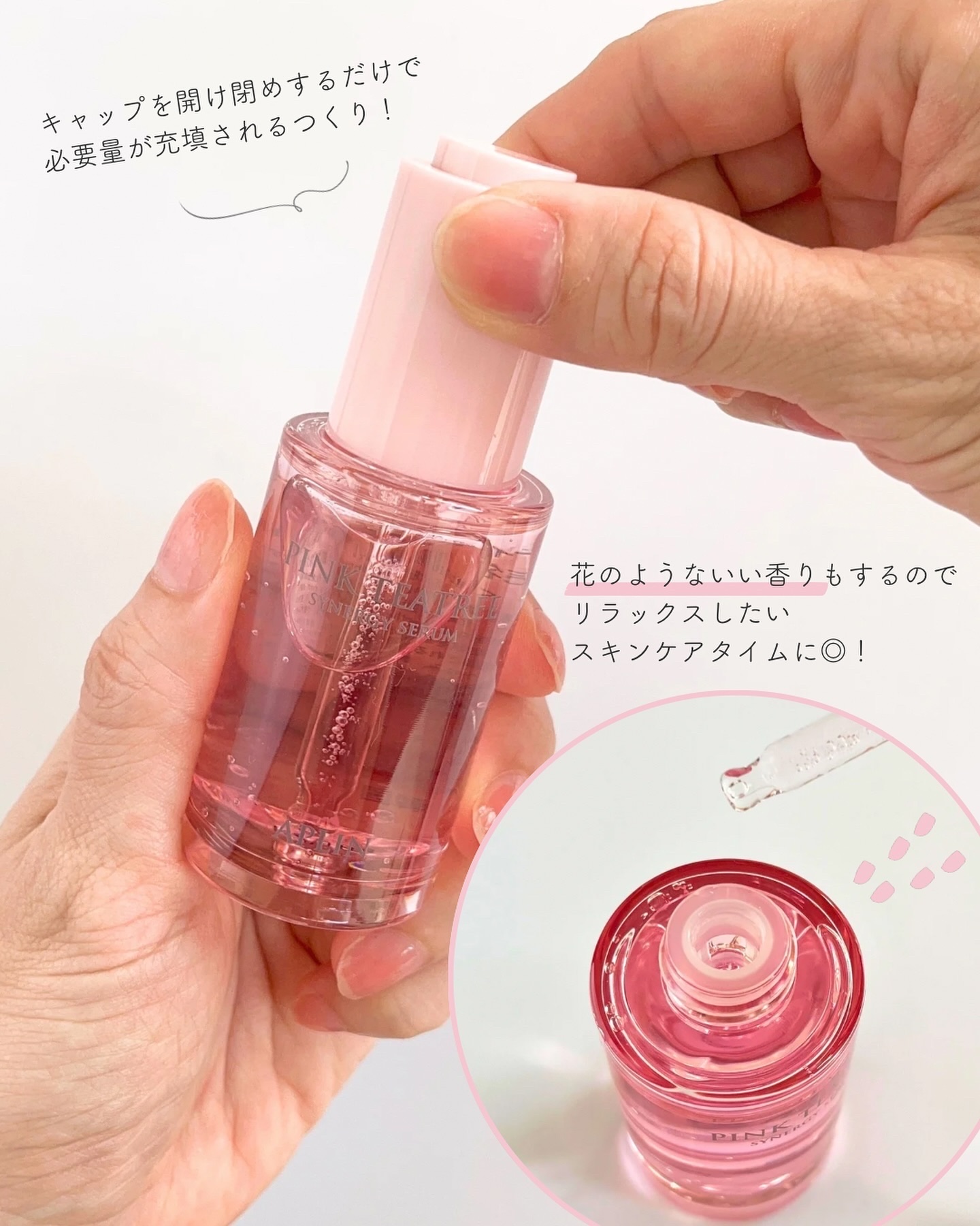 ピンクかわいいーーー! ってなるこのセラム🫶🏻 かわいいだけじゃ無いんです! 保湿成分のティーツリーやツボクサエキスなどのCICA成分や他にも優しいGREEN成分がたくさん! ほどよくとろみがあって、保湿感もあるんだけど重くない。