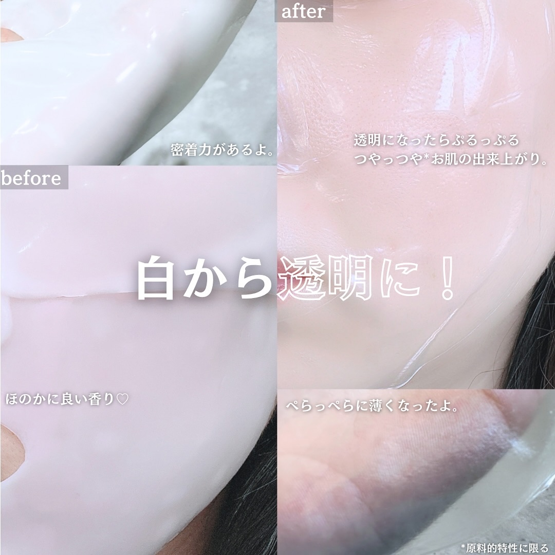 | ぷるぷるシートが新感覚なハイドロゲルマスク🙌肌表面はサラッとしていてすべすべ、 ほんのりつや感を感じる仕上がりが気に入ったよ◎ | 詳細を見る | |