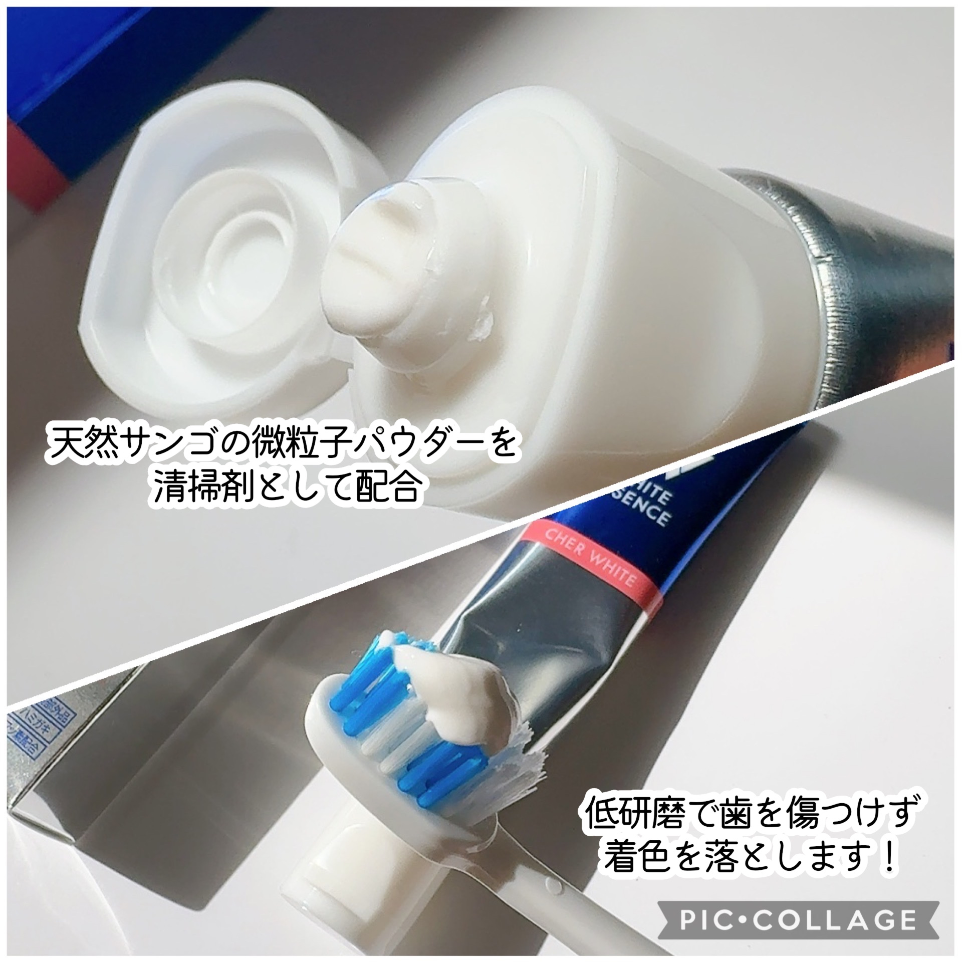 - 【医薬部外品】 全国 275* の歯科医院をフランチャイズ運営し、歯のホワイトニングやクリーニングなどのサービスを展開するホワイトエッセンスが開発。 「こだわりのツルツル感」 サンゴパウダー配合。歯に負担の少ない使い心地で歯垢を落としツルツルに!また、タバコのヤニ除去に対する有効成分「PEG400」を配合。歯面に付着しているしつこい着色汚れに働きかけます。 *2024年3月末時点