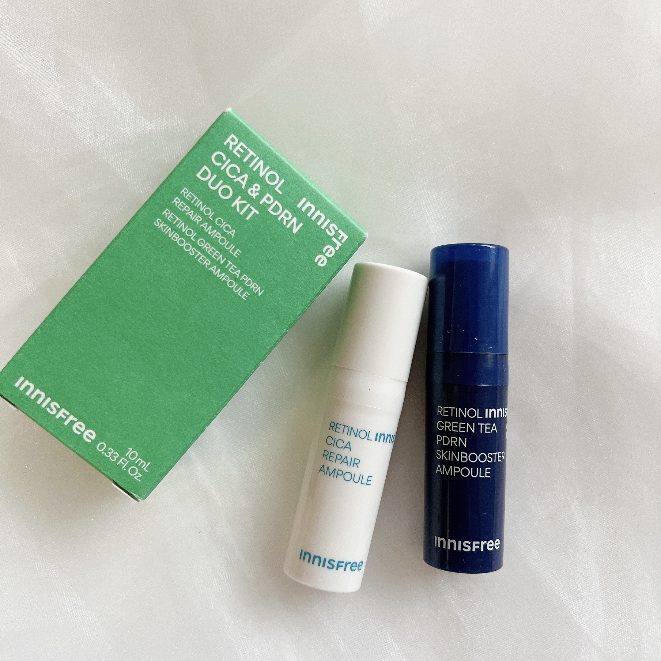 イニスフリーのレチノール美容液がパワーUP💙 3種のレチノール× グリーンティーPDRN™で肌表面と角質層の内側にWアプローチする 美容成分80%以上の高濃度美容液 水の代わりにグリーンティーPDRN™高配合 今までのレチノールに満足できなかったひとにも是非試してみてほしいなꕀ♥