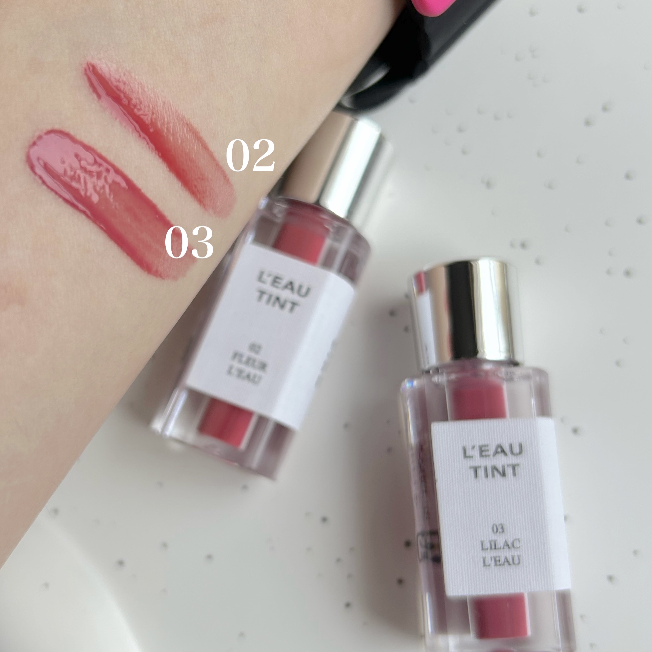 02の方が個人的に使いやすいと感じました。03はブルベ夏の方が似合いそうな色味で可愛いのですが少しオレンジっぽさもある02が気に入りました! 塗った瞬間はみずみずしく、時間が経つと艶が出てきます。(3時間くらい経つと艶感が減る気がする) 飲み食いした後は唇の内側が落ちてしました。(正直リップモンスターの方が落ちないかと…)