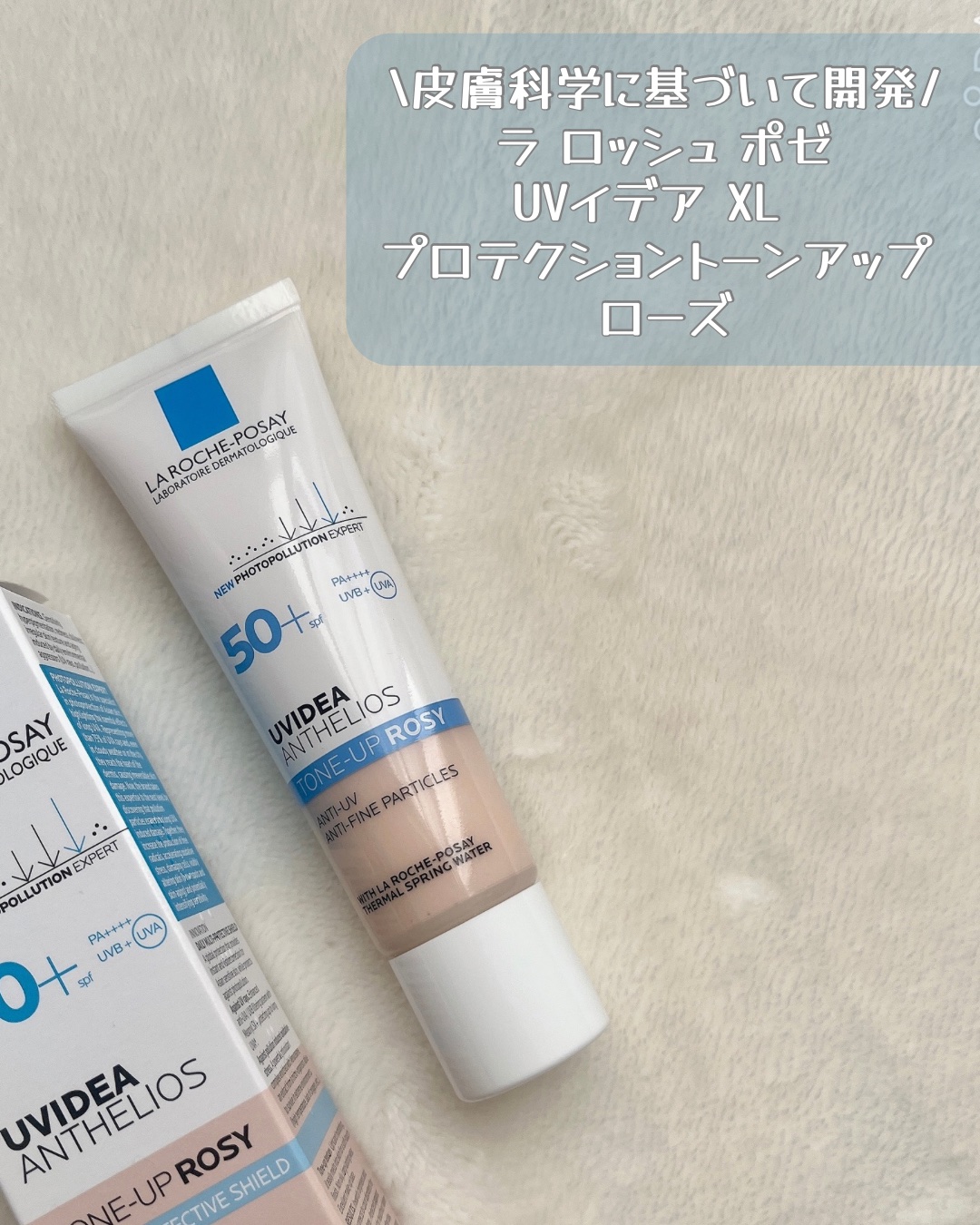 内側から発光してるみたいなツヤ感✨ 【ラ ロッシュ ポゼ/UVイデア XL プロテクショントーンアップ ローズ】 SPF50+/PA++++ スルスル滑らかに伸びる心地よいテクスチャー!! 密着感と保湿感があり、お気に入り◎ トーンアップローズはメイクアップ効果により、血色感を演出してくれる 仕上がりイメージです🌹