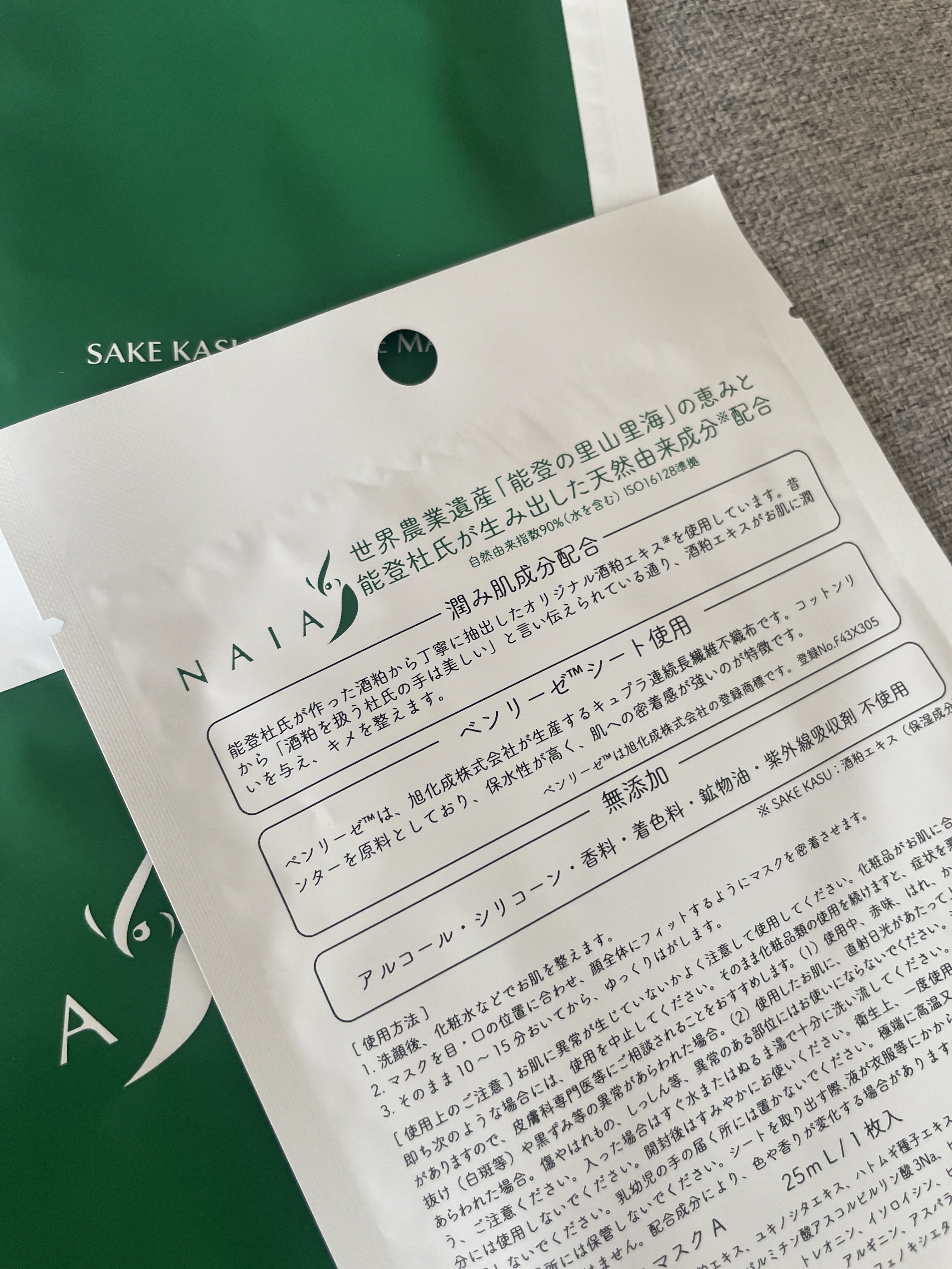 商品詳細情報NAIA 酒粕フェイスマスク 7枚入り(個包装)
