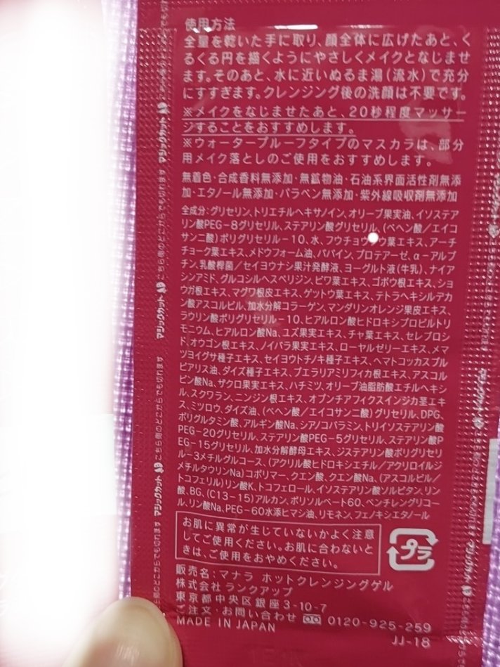 - POINT1 メイクを落としながらマッサージが可能に マッサージをすることで美容成分がはじけ、メイクや黒ずみ汚れを絡め取るものと、肌にうるおいとして残るものとに分かれ、洗い流してもツルツルに! クレンジング後のプラス20秒のマッサージは、毎日でもしていただきたいほどおすすめです。さらに、敏感肌パッチテスト済み*1。 *1 全ての方に刺激がないというわけではございません。 POINT2温感マッサージでハリと透明感アップ! 温感処方によるスチーム効果とマッサージで、硬くなった肌と毛穴を和らげるだけでなく、クレンジングタイムを至福のひと時へと導きます。 6つのめぐりケア成分を追加、さらにハリのある、つややかな肌へと導きます。*1 角質層まで *2・4・5・6 保湿成分 *3 グルコシルヘスペリジン(保湿成分) *7 パパイン、アルギン酸Na(整肌成分) POINT3極小マイクロゲル & 極小シュガーオイル*1で毛穴の奥から汚れを落とす 毛穴よりも小さなマイクロサイズのゲルと極小シュガーオイル*1で、毛穴の奥まで汚れを取り除き、毛穴の目立たない滑らかな仕上がりへ。 *1 (C13-15)アルカン(整肌成分) POINT4 91.3%が美容液 まるで高級な美容液のように、91.3%が美容液成分でできているクレンジング。汚れはしっかり取り除くのに必要なうるおいは肌に残すので、毛穴も目立たなくなり、使う度にうるおいに満ちてハリのあるみずみずしい肌へと導きます。*1 セレブロシド(保湿成分) *2 保湿成分 *3 加水分解コラーゲン、ダイズ種子エキス、セイヨウトチノキ種子エキス、メマツヨイグサ種子エキス、ザクロ果実エキス、プエラリアミリフィカ根エキス(整肌成分) *4 フウチョウソウ葉エキス(整肌成分) *5 パパイン、アルギン酸Na(整肌成分) POINT5マナラこだわりの「7つの無添加」 着色料 合成香料 鉱物油 石油系界面活性剤 エタノール 紫外線吸収剤 パラベン 効果実感はもちろん、肌へのやさしさもとことん追求。デリケートなお肌の方にも喜ばれていいます。 POINT6 1本で8つの機能 〈ホットクレンジングゲル〉は、1本でクレンジング・洗顔の役割を果たすのでダブル洗顔不要。 さらにクレンジング後の肌を和らげ、スキンケアの浸透*2を助けるブースター*2の役割も果たします。*1 毛穴の黒ずみ汚れを洗い流すこと *2 浸透は角質層まで *3 マッサージ行為による