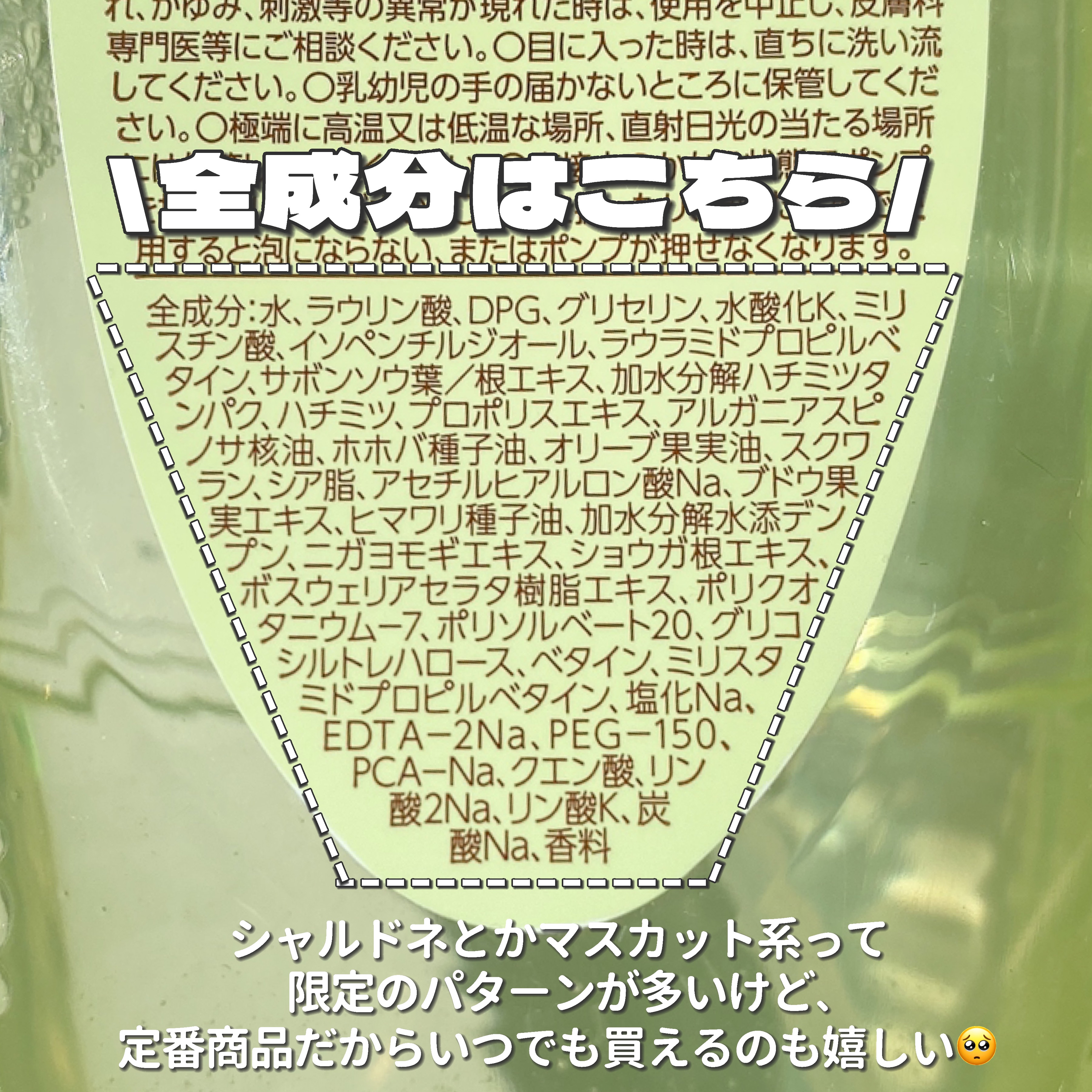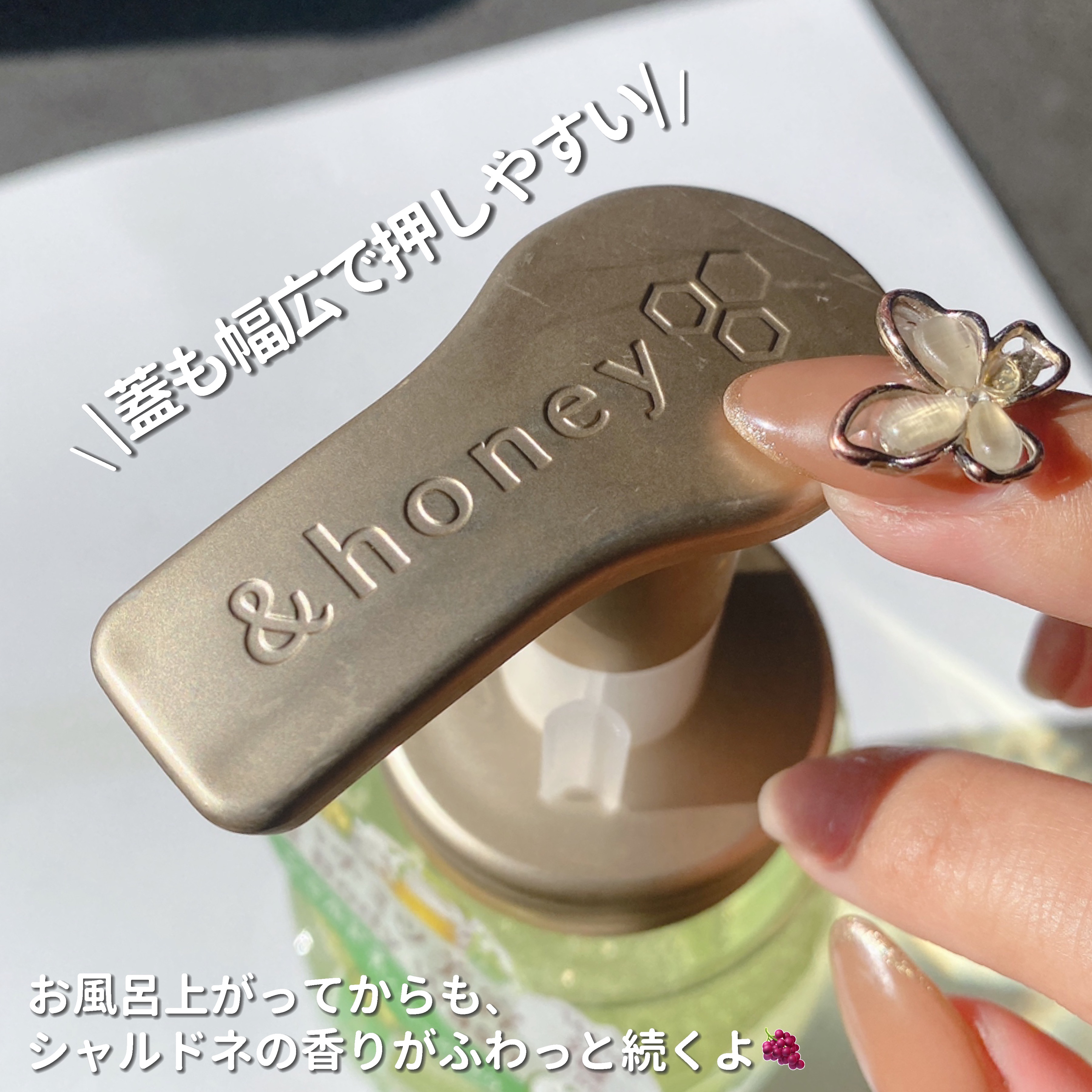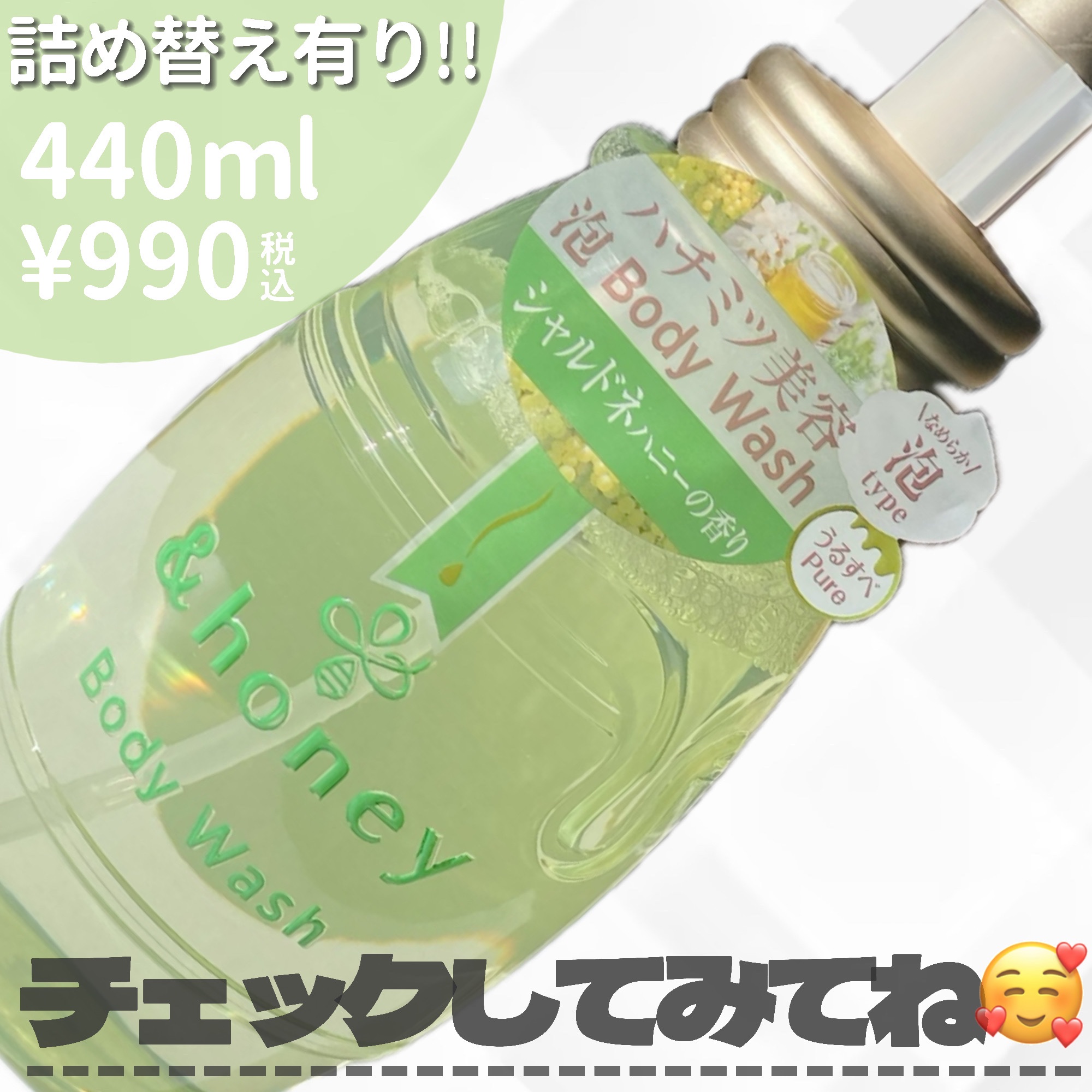 みぐみずしく上品なシャルドネの香り 💚&honeyから泡タイプのボディウォッシュが初登場 きめ細かくなめらかな泡で潤いながらすべすべなお肌に✨ 優しくなで洗いするのがポイントだよ! 甘々ではなく上品なシャルドネの香りで至福のバスタイムに…🛁🫧