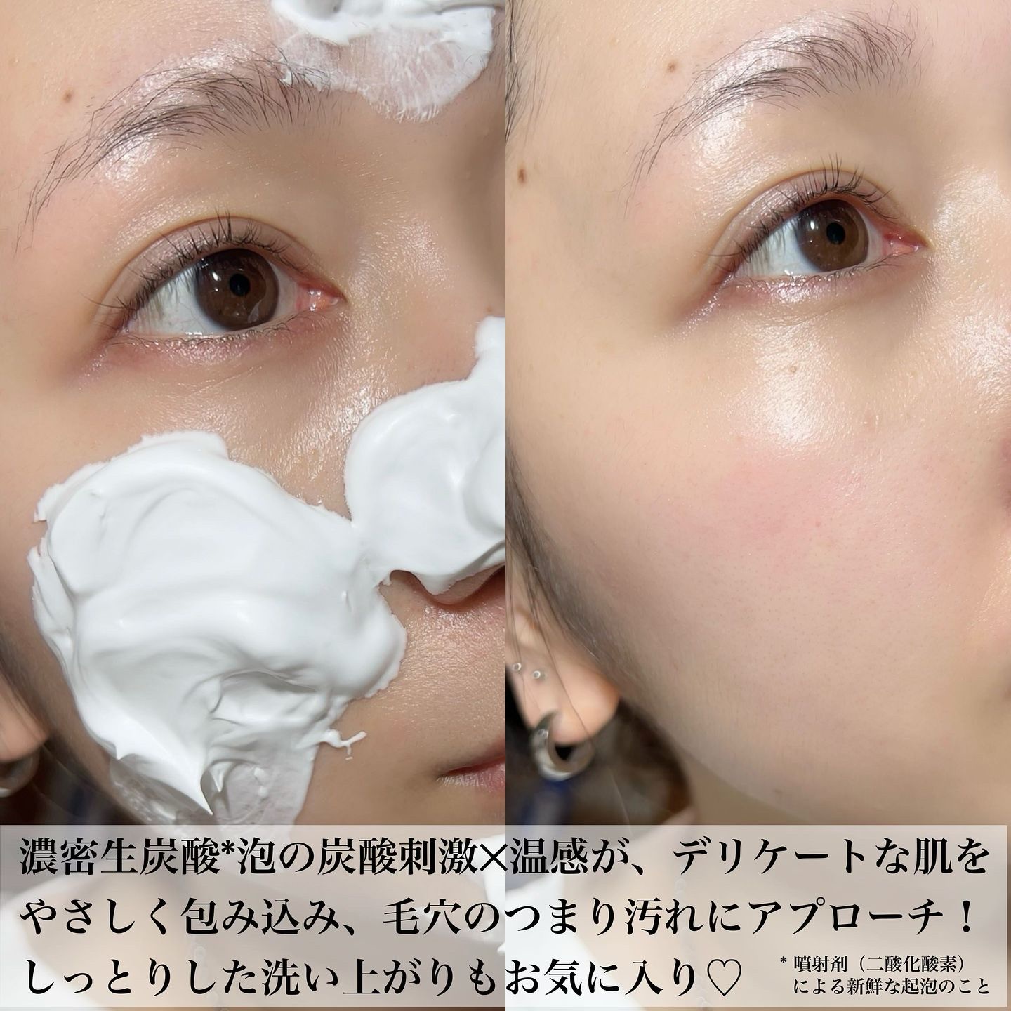 高濃度の生炭酸泡で毛穴の汚れや、古い角質を洗い落としてくれてくすみもスッキリキ 約84%美容液成分も配合されていてしっかり保湿成分も配合されているよ フローラルブーケの香りでいい香りでしたダ