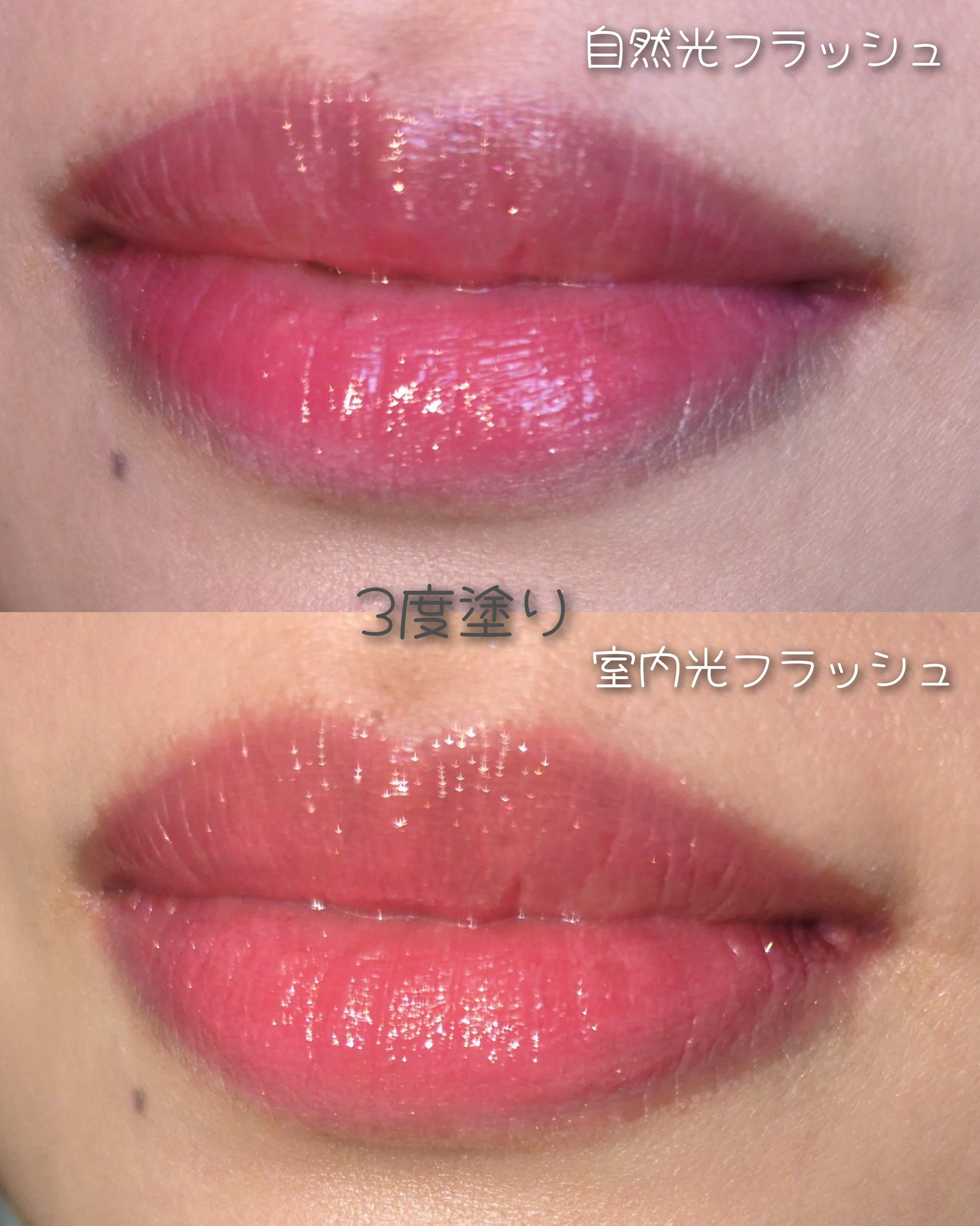 栄養価の高いホホバオイルとクコの実エキスを配合! ビタミンCとE を含んだクラウドベリーエキスが配合され 唇を深く保湿して柔らかくしなやかに保つ🥰 だからと言ってベタつきが少ないのが嬉しい💕 ティッシュオフしてもラメがしっかりと残る✨ 唇に本物の宝石を纏える高級感!
