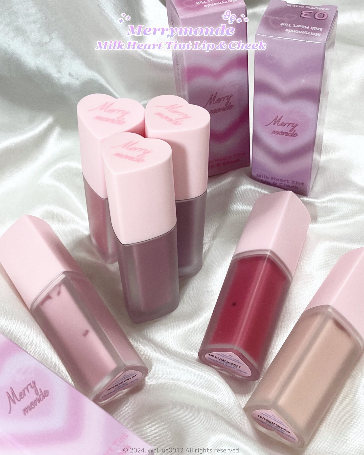 ミルクのような滑らかさ! メリーモンド ミルクハートティント リップ&チーク💖 アインズトルペパウダールームの10月Kオンニオススメ選定アイテムに選ばれた注目商品💥 ヴィーガン成分の植物性天然オイルを使っていて、唇がしっとりと潤うのもポイント!