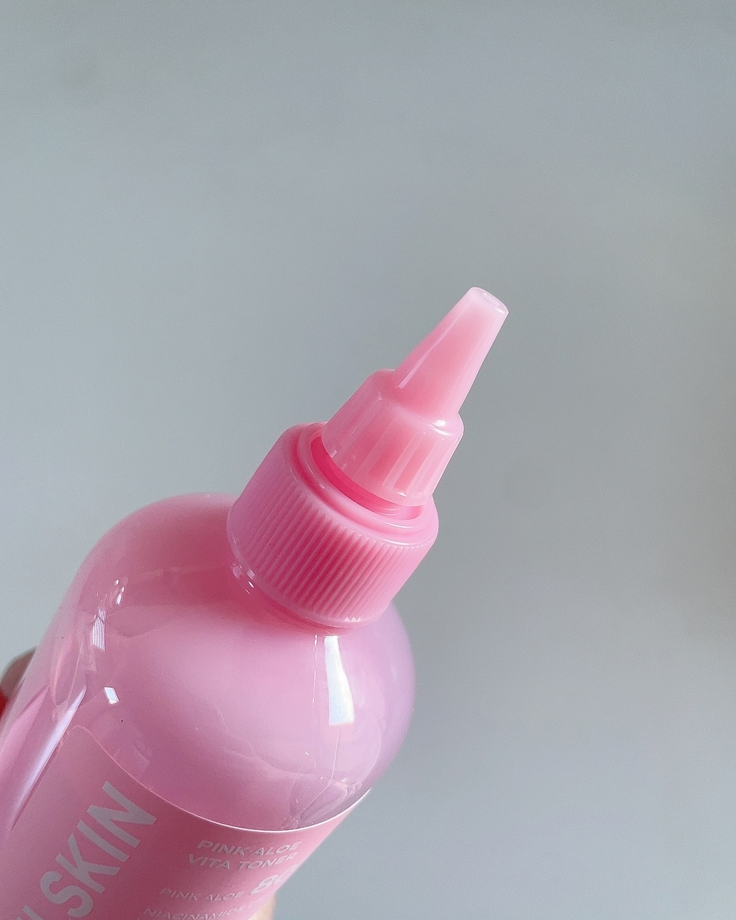 ピンクでかわいいトナー♡ とんがりキャップが付属されていて、付け替えて使うよ𓂃◌𓂂 このトナーはそんなピンクアロエを80%も配合している🌿𓂃◌𓈒𓐍 トナーなのにまるでエッセンス級⟡.· トラブル肌・敏感肌におすすめなので夏の日焼けしたお肌のクーリングにじゃぶじゃぶ使いたい!