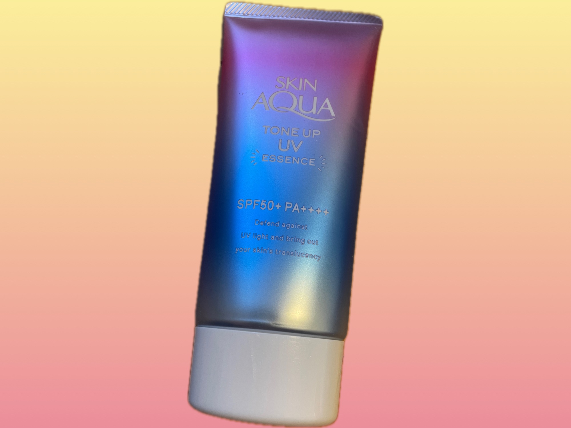 - ※カラー名称「ハピネスオーラ」は「ローズ」へ名称変更となりました。 <ミントグリーン> 赤み補正*1!UVカットしながら、色と光をコントロールし、肌をトーンアップ*1。 ミントグリーンカラーで透き通るような素肌つづく!エッセンスタイプの日焼け止め。 透明感*1のある肌に。 SPF50+、PA++++、UV耐水性★★。 鉱物油フリー。パラベンフリー。ときめくサボンの香り。 <ラベンダー> 明るさ補正*1!UVカットしながら、色と光をコントロールし、肌をトーンアップ*1。 透明感*1を引き出すラベンダーカラーの日焼け止め。 すーっとのびて、みずみずしい使い心地のエッセンスタイプ。 SPF50+、PA++++、UV耐水性★★。 鉱物油フリー。パラベンフリー。ときめくサボンの香り。 <ローズ> 血色感補正*1!UVカットしながら、色と光をコントロールし、肌をトーンアップ*1。 ローズカラーで血色をプラスし、透明感*1のある肌に。 エッセンスタイプの日焼け止め。 SPF50+、PA++++、UV耐水性★★。 パラベンフリー。ハピネスブロッサムの香り。 <ブルー> UVカットしながら、色と光をコントロールし、肌をトーンアップ*1。 血色感を抑えて儚げな色白肌*1に見せるブルーカラーの顔・からだ用日やけ止め。すーっとのびて、みずみずしい使い心地。 透明感ブルー×透明感ホワイト=はかなげブルーカラーで、自分史上最高*2の色白肌*1、うるおう美容液成分(うるおい成分)としてヒアルロン酸Na、ビタミンC誘導体*3配合。 SPF50+/PA++++。こころがときめくサボンの香り。化粧下地にも。石けんで落とせます。 パラベンフリー。鉱物油フリー。アレルギーテスト済み(全ての方にアレルギーが起こらないというわけではありません)。 *1:メイクアップ効果による *2:スキンアクアシリーズにおいて *3:リン酸アスコルビルMg(うるおい成分)