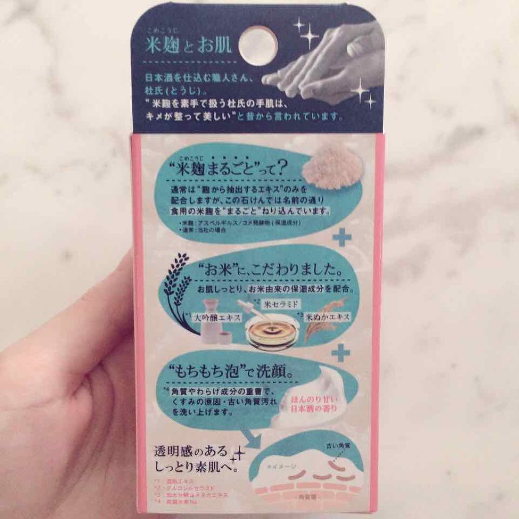 - 米麹(アスペルギルス米発酵物(保湿成分))を、まるごとねり込んだ洗顔石けんです。 お米由来の保湿成分と角質やわらげ成分の重曹を配合したもちもち泡で、気になるくすみの原因・古い角質汚れを しっとり洗い流してお肌の透明感を取り戻します。 ほんのり甘いお酒の香り。
