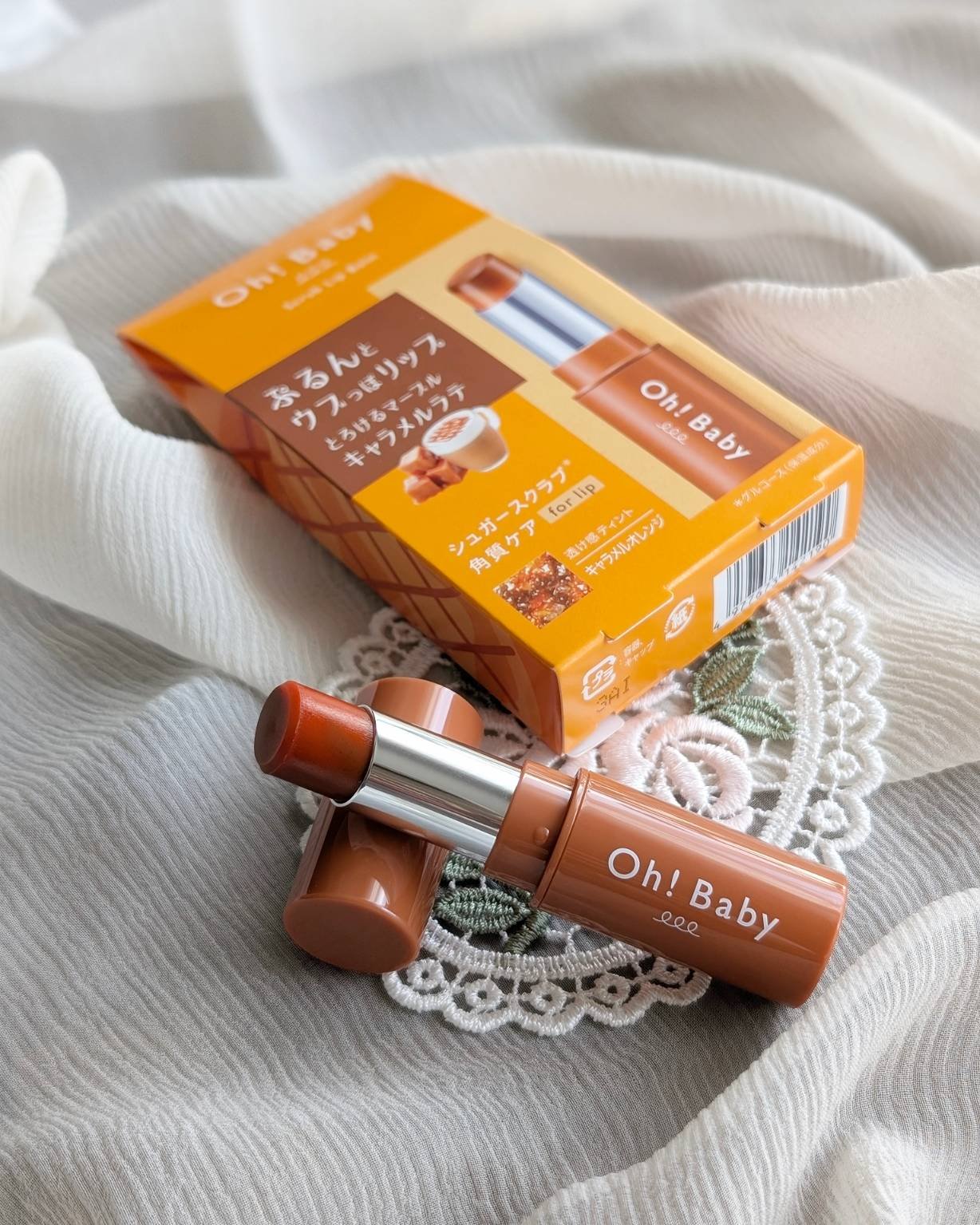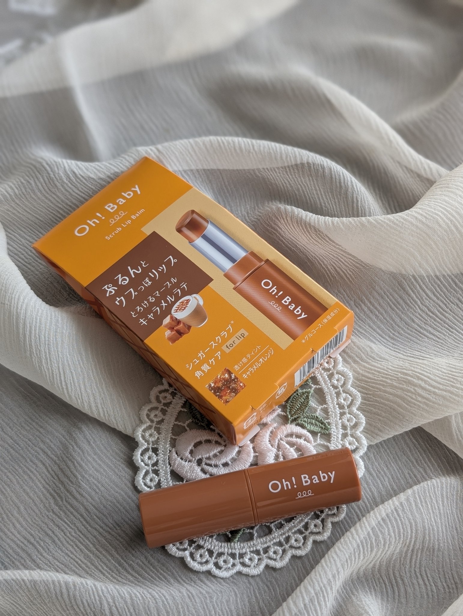 美味しそうなキャラメルラテの香りのリップスクラブ✨ Oh!Babyのスクラブリップバームはスクラブのジャリジャリ感が他のブランドのものより粗めでお気に入り! 濃厚リッチな2色が混ざりあう、マーブルカラーが限定登場! つけるたびワクワク♡ 香ばしい焦がしキャラメルとコーヒーのハーモニー。甘くほろ苦い香り。
