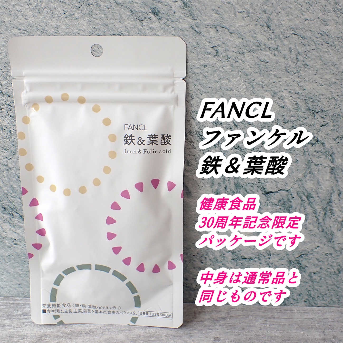 - 「鉄」は主に血液中の赤血球を作る成分で、全身に酸素を送る働きをしています。女性は月経・妊娠・出産によって不足しがち。また、大量に汗をかく、運動量が多い方も鉄が失われがちです。ファンケルの「鉄」は吸収に優れたクエン酸鉄ナトリウムを使用。1日2粒で10mgの鉄を補給できます。さらに妊娠期におすすめな葉酸も配合。 ※パッケージが変更になりましたが、商品内容に変更はございません。