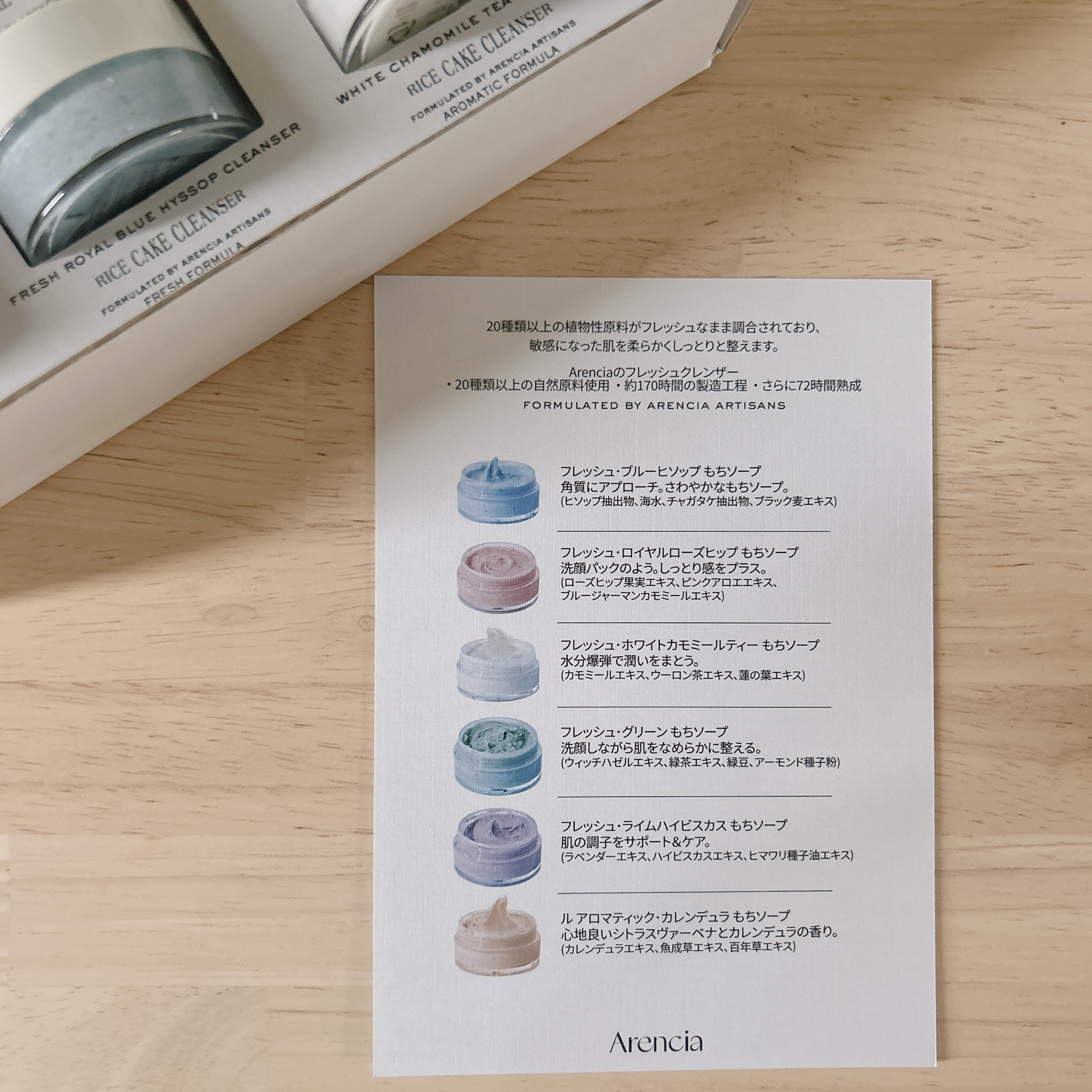 もちもちとしたテクスチャーが柔らかい泡になってやさしく日焼け止めやメイクを落としてくれるダブル洗顔不要! フレッシュ・ホワイトカモミールティー 肌に香りと潤いをまとう ギフトボックスも可愛すぎる🎀 カードが2種類選べるからプレゼントにも良いね