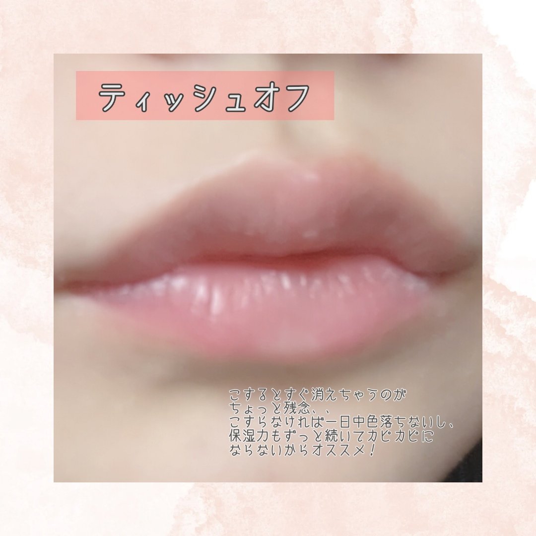スモークみがかかったピンクで、うさぎ舌になれる🐰 色が濃すぎなくて、自然なうるうるピンクだからスクールメイクにもってこい! 塗ると体温でとろけてぷるぷるになるよ♪ 色持ちも良いのに、高保湿で最高! 薄づきだから、もっと色を出したい人はラズベリーピンクがオススメ♥️ その他パーソナルカラーにあった色が展開されてるからチェックしてみてね✅