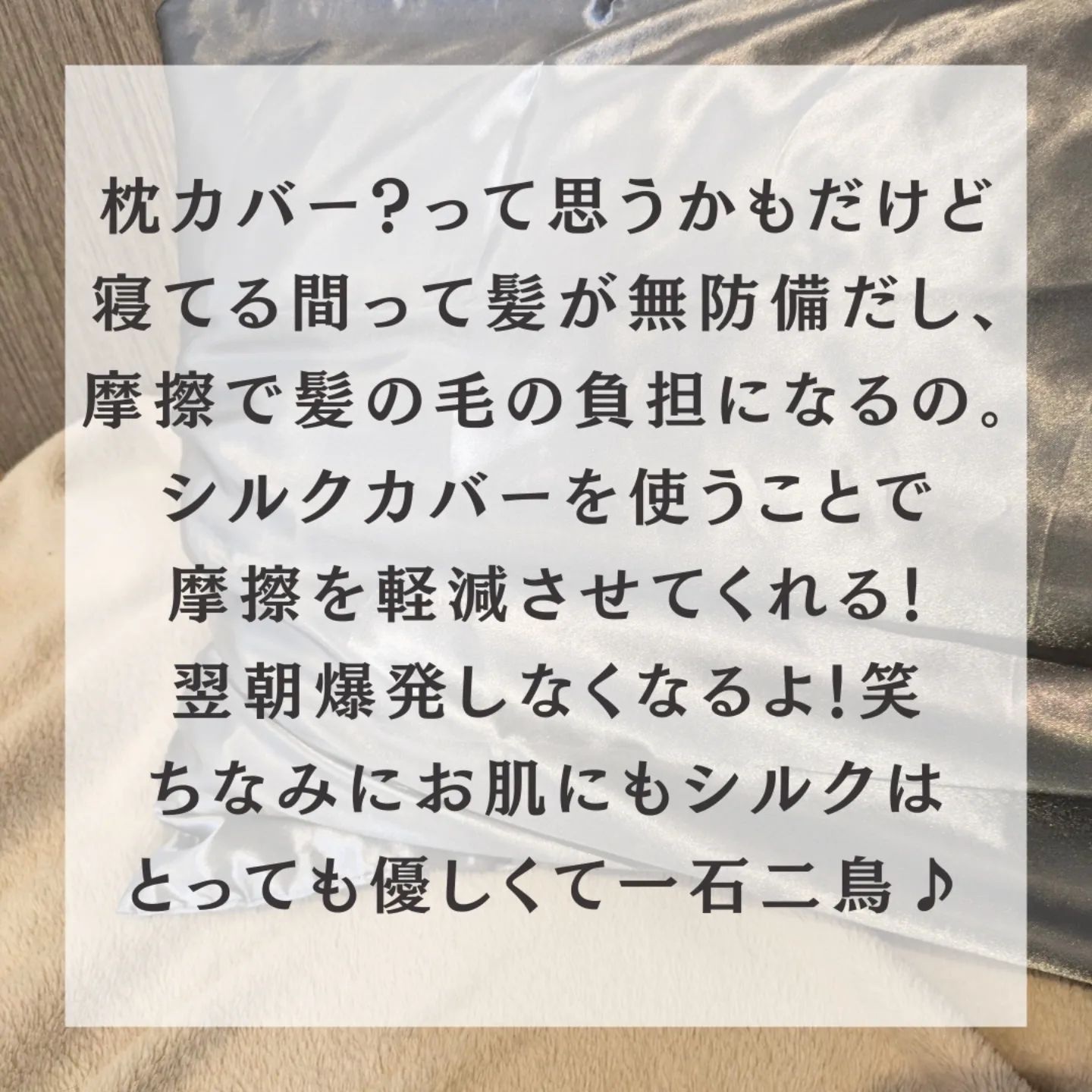 洗濯できるシルク 枕カバーAero Silkシルクは、お肌の成分に近いとされる、約20種類ものアミノ酸が結合した天然繊維は皮膚への刺激がとても少なく、保湿効果にすぐれ抗酸化作用が高い素材😌 そんなシルクを使って作られた枕カバーを使用したら髪や肌と枕との摩擦を軽減することができちゃう💓 Aero Silkは、ポリエステル15%✖︎シルク85%の黄金比で作られているから洗濯機でお洗濯しても熱に強くなりシワができにくい✨