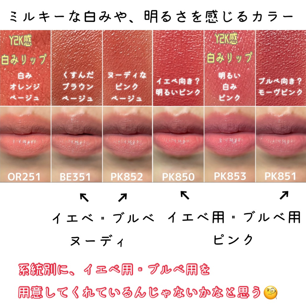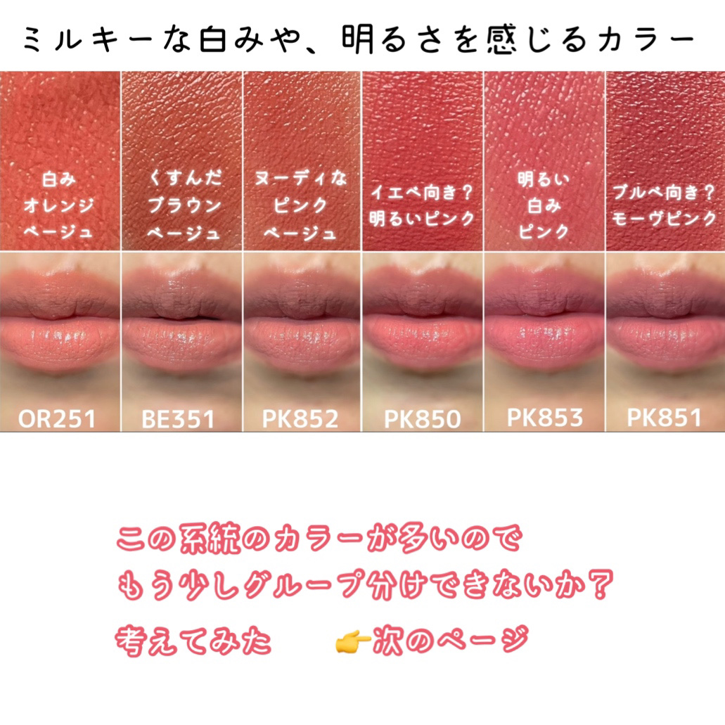 好きすぎて、今頃、全色揃えました。 リップの着画だけでは分かりにくい細かな色味は、腕のスウォッチもアップで付けました☝️ 「顔から浮く」「顔色が悪くなる」と表現してしまっていますが💦