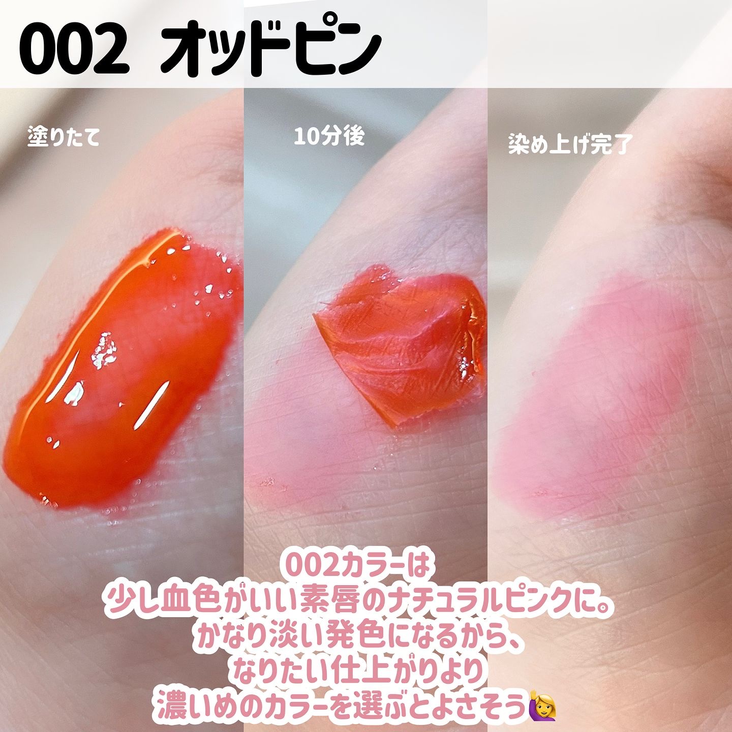 24時間色持ちするOiad.のリップティーク💄⟡.· 眉ティントのリップ版のような感覚で、塗る▶︎放置▶︎剥がして着色完了💋 長時間キープはありがたい🩷 画像は帰宅後なのに塗りたてみたいじゃない? 塗りたての色がずっと続くから保湿だけで過ごせるし、ベースとして使って他のリップを重ねるのもおすすめだよ💄♥