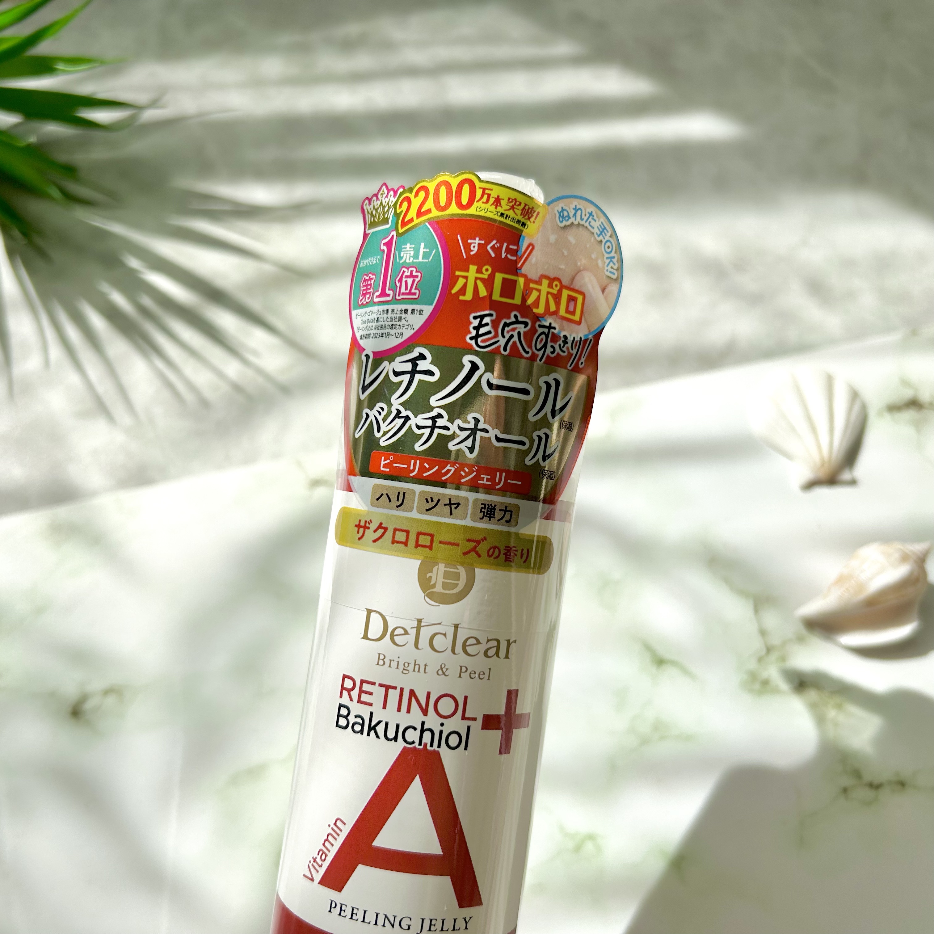 - <DETクリア ブライト&ピール ピーリングジェリー〈エイジングケアタイプ〉> 水、グリセリン、カルボマー、ステアルトリモニウムクロリド、パルミチン酸レチノール、バクチオール、ナイアシンアミド、セラミドNS、セラミドNP、セラミドAP、ザクロ果実エキス、セイヨウナシ果実、パパイン、ユズ果実エキス、リンゴ酸、酒石酸、サリックスニグラ樹皮エキス、ヒアルロン酸Na、水溶性コラーゲン、ローヤルゼリー、ハチミツ、ハチミツエキス、プロポリスエキス、ドクダミエキス、ツボクサ葉エキス、ノイバラ果実エキス、ビワ葉エキス、チャ葉エキス、グリコシルトレハロース、加水分解水添デンプン、BG、シクロデキストリン、ダイズステロール、コーンスターチ、ヤシ油アルキルグルコシド、水添レシチン、PEG/PPG-5/30コポリマー、スクロース、コーン油、パーム油、トコフェロール、フェノキシエタノール、香料