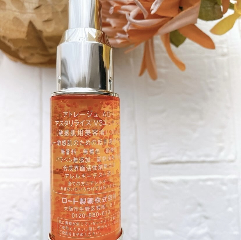 ❀❀❀❀❀ロート製薬アトレージュAD+アスタリライズV3エッセンス❣️敏感肌×エイジングケア※12つの悩みに応えてくれるという美容液です✨弾けるようなハリのあるお肌に導いてくれるのだそう🎵オレンジ色のV3カプセル(うるおい成分)を配合している...