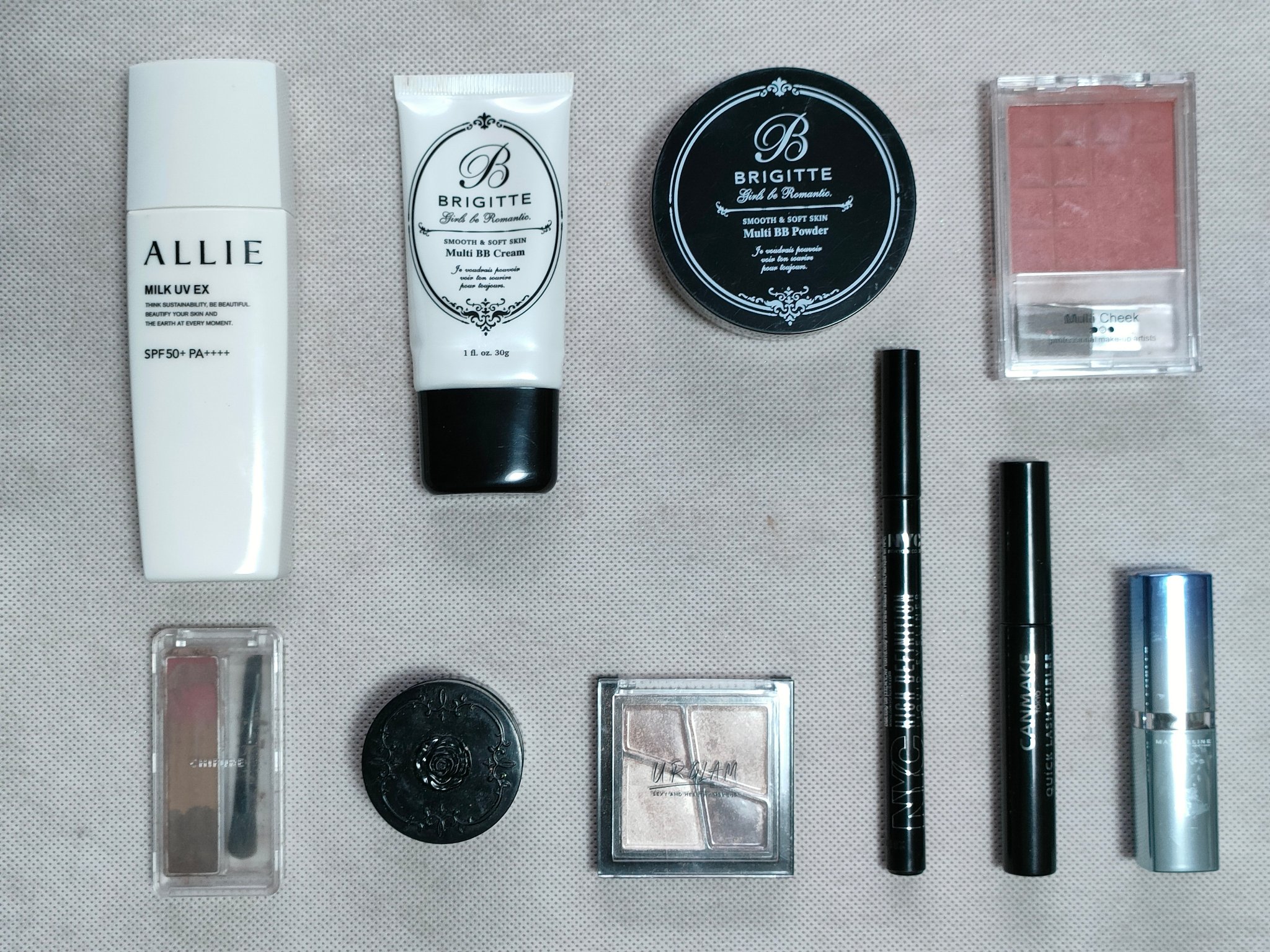 アリィー ニュアンスチェンジUV ジェル RSを、顔全体にまんべんなく塗ります。 RMK RMK ジェルクリーミィファンデーション 103を、顔全体にまんべんなく塗ります。 ジョンソンベビー ジョンソン ベビーパウダーを、顔全体にまんべんなく軽くはたきます。 THE BODY SHOP bronze shade warm glowを、両頬に塗ります。 KATE リフレクトミラーアイズ BR-1の締め色を、眉毛全体にまんべんなく塗ります。 URGLAM UR GLAMBLOOMING EYE COLOR PALETTE 01を、使用しました。 ちふれ リキッド アイライナー 筆ペンタイプ BK30 ブラックを、塗ります。 CEZANNE エアリーカールマスカラを、まつ毛全体にまんべんなく塗ります。 MAYBELLINE NEW YORK コロッサルボリュームエクスプレスを、まつ毛全体にまんべんなく塗ります。 MAYBELLINE NEW YORK SPステイ マットインク 135を、唇全体にまんべんなく塗ります。