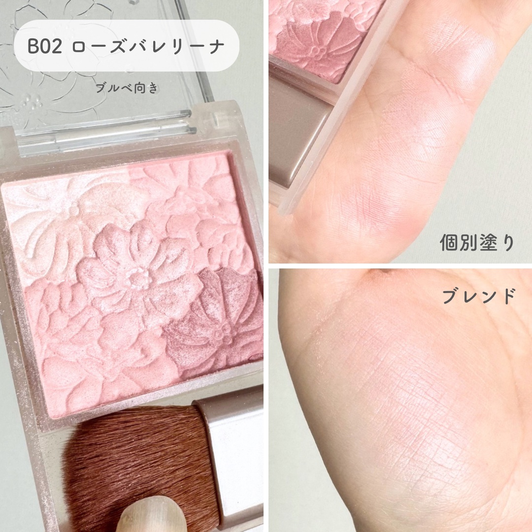 - <B01 コットンコーラル> トリイソステアリン酸ポリグリセリル-2、オクチルドデカノール、リンゴ酸ジイソステアリル、ヘキサ(ヒドロキシステアリン酸/ステアリン酸/ロジン酸)ジペンタエリスリチル、ミリスチン酸亜鉛、メタクリル酸メチルクロスポリマー、(HDI/トリメチロールヘキシルラクトン)クロスポリマー、テトライソステアリン酸ペンタエリスリチル、ビスジグリセリルポリアシルアジペート-2、ペンチレングリコール、フェノキシエタノール、シリカ、メチルパラベン、アルミナ、トコフェロール、ヒドロキシアパタイト、ポリメチルシルセスキオキサン、イソステアリン酸オクチルドデシル、水添ロジン酸ペンタエリスリチル、水、BG、エクトイン、ダマスクバラ花油、カニナバラ果実油、ヒアルロン酸Na、セラミドNP、ノイバラ果実エキス、ザクロ花エキス、トウキンセンカ花エキス、ローズマリー葉エキス、水溶性コラーゲン、ツボクサ葉エキス、タルク、合成フルオロフロゴパイト、酸化チタン、マイカ、酸化鉄、黄4、赤226、酸化スズ、ホホバエステル、トリヒドロキシステアリン <B02 ローズバレリーナ> トリイソステアリン酸ポリグリセリル-2、オクチルドデカノール、リンゴ酸ジイソステアリル、ヘキサ(ヒドロキシステアリン酸/ステアリン酸/ロジン酸)ジペンタエリスリチル、ミリスチン酸亜鉛、メタクリル酸メチルクロスポリマー、(HDI/トリメチロールヘキシルラクトン)クロスポリマー、テトライソステアリン酸ペンタエリスリチル、ビスジグリセリルポリアシルアジペート-2、ペンチレングリコール、フェノキシエタノール、シリカ、メチルパラベン、アルミナ、トコフェロール、ヒドロキシアパタイト、ポリメチルシルセスキオキサン、イソステアリン酸オクチルドデシル、水添ロジン酸ペンタエリスリチル、水、BG、エクトイン、ダマスクバラ花油、カニナバラ果実油、ヒアルロン酸Na、セラミドNP、ノイバラ果実エキス、ザクロ花エキス、トウキンセンカ花エキス、ローズマリー葉エキス、水溶性コラーゲン、ツボクサ葉エキス、タルク、合成フルオロフロゴパイト、マイカ、酸化チタン、酸化鉄、酸化スズ、赤226、ホホバエステル、グンジョウ、トリヒドロキシステアリン、赤202、マンガンバイオレット <B03 ラベンダードリーム> トリイソステアリン酸ポリグリセリル-2、オクチルドデカノール、リンゴ酸ジイソステアリル、ヘキサ(ヒドロキシステアリン酸/ステアリン酸/ロジン酸)ジペンタエリスリチル、ミリスチン酸亜鉛、メタクリル酸メチルクロスポリマー、(HDI/トリメチロールヘキシルラクトン)クロスポリマー、テトライソステアリン酸ペンタエリスリチル、ビスジグリセリルポリアシルアジペート-2、ペンチレングリコール、フェノキシエタノール、シリカ、メチルパラベン、アルミナ、トコフェロール、ヒドロキシアパタイト、ポリメチルシルセスキオキサン、イソステアリン酸オクチルドデシル、水添ロジン酸ペンタエリスリチル、水、BG、エクトイン、ダマスクバラ花油、カニナバラ果実油、ヒアルロン酸Na、セラミドNP、ノイバラ果実エキス、ザクロ花エキス、トウキンセンカ花エキス、ローズマリー葉エキス、水溶性コラーゲン、ツボクサ葉エキス、タルク、合成フルオロフロゴパイト、マイカ、酸化チタン、マンガンバイオレット、グンジョウ、酸化スズ、酸化鉄、赤226、赤202、ホホバエステル、トリヒドロキシステアリン、水酸化Al