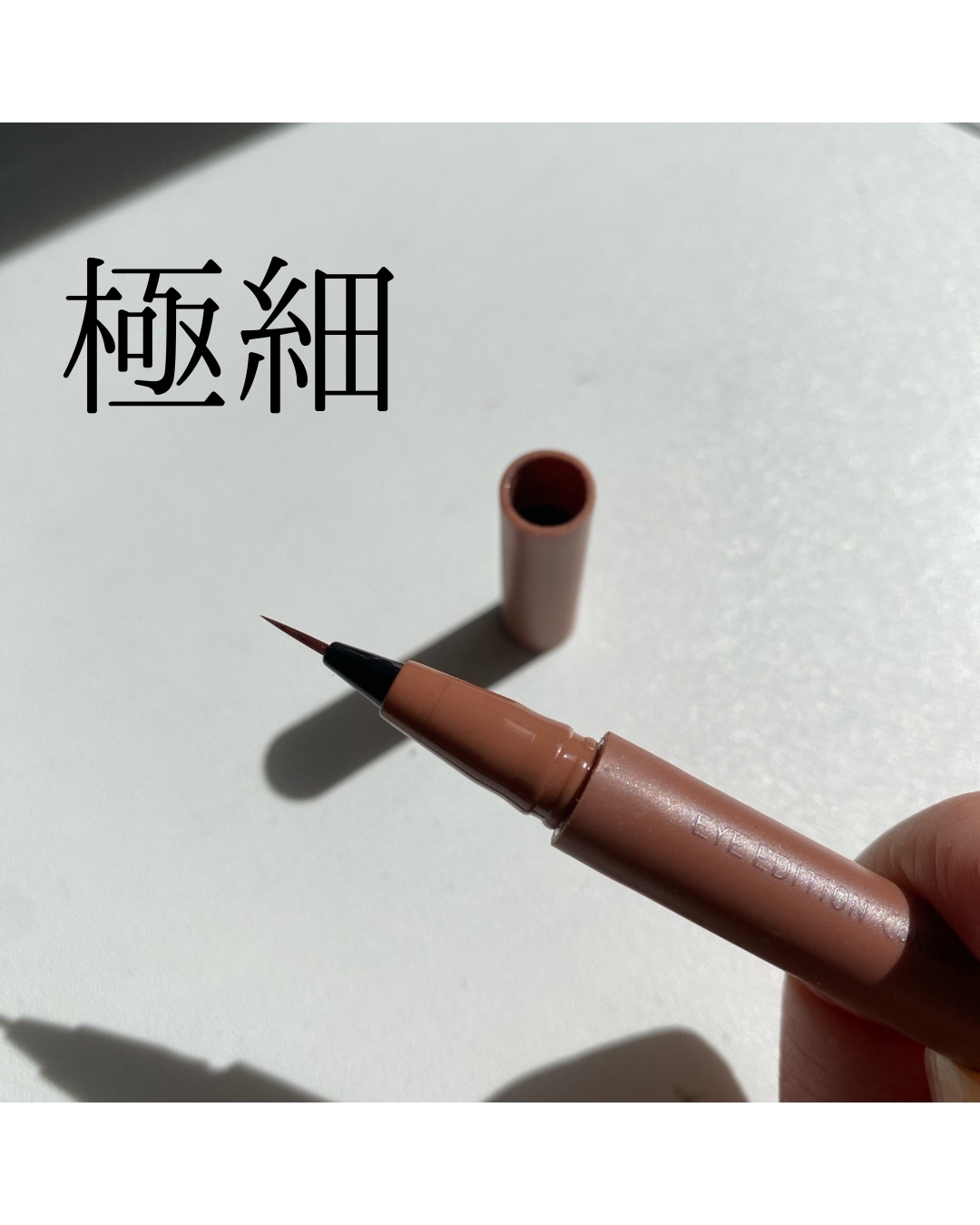 自眉のようにリアルな線で眉尻の先まで簡単に描ける、ブレにくい超極細筆😳 0.01mmの超極細ライン! 絶妙な発色で、濃すぎず薄すぎない自然な仕上がり ウォータープルーフで汗、皮脂、こすれに強く美しい仕上がりが長時間持続🥰 このライナーを使ってから朝から夜まで落ちずに綺麗な眉毛をキープできました!!😳✨