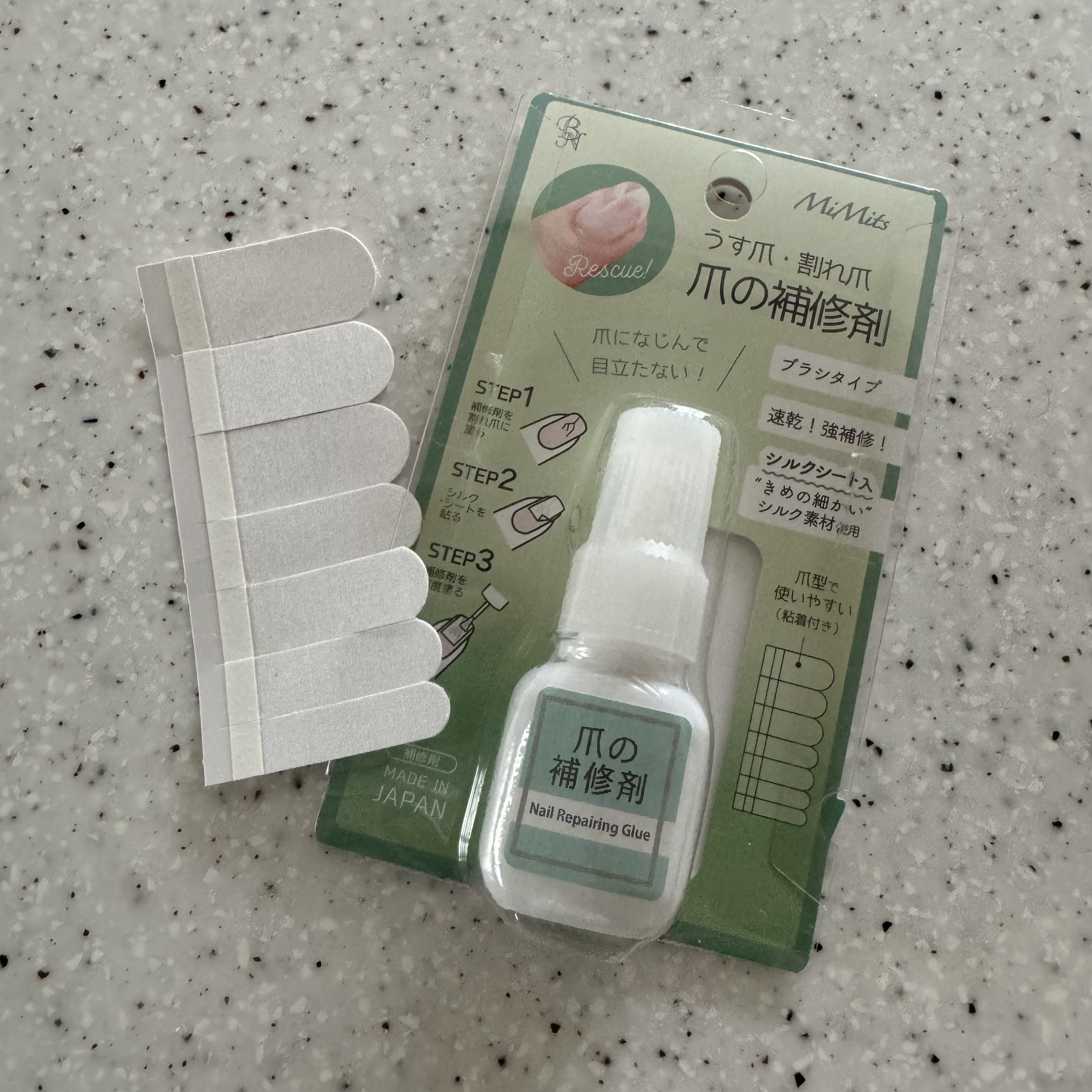 - 💖ネイリストおすすめ商品💖 アルコール消毒や手洗い、水仕事などで割れてしまった爪を キレイに補修できちゃいます💅 ✨多目的に使用可能で便利✨ 〇亀裂の入った爪や割れた爪の補修 〇つけ爪やデコレーションの接着 使ってみると違いがわかります!! 補修剤を塗ると、シルク100%シートが透明になって 目立たなくなるんです✨✨ 補修後の爪がキレイ☺ 💕おすすめPOINT💕 ❤目立たない&強度UP シルク100%シート付 ❤液状の速乾タイプ ❤ブラシだから塗りやすい <補修方法> 1) 対象の爪に補修剤を塗る 2) シルクシートを対象の箇所に貼る(強度アップ) 3) その上に、さらに補修剤を塗る 4) 全体が乾いた後に、バッファーで表面を整える