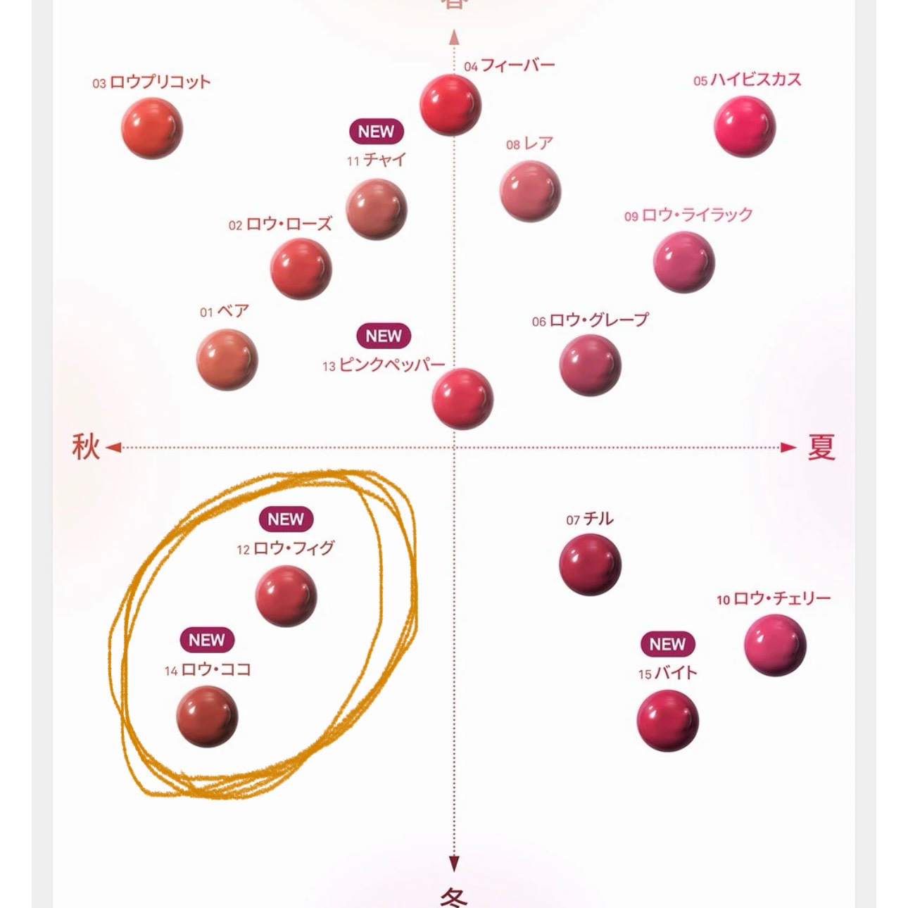 - <R001 ベア> 水、ジフェニルジメチコン、オクチルドデカノール、ビスジグリセリルポリアシルアジペート-2、リンゴ酸ジイソステアリル、トリメチルシロキシフェニルジメチコン、水添ポリイソブテン、ジグリセリン、ポリソルベート60、BG、セチルPEG/PPG-10/1ジメチコン、1,2-ヘキサンジオール、ペンチレングリコール、(アクリル酸ヒドロキシエチル/アクリロイルジメチルタウリンNa)コポリマー、セテアレス-20、スクワラン、フェノキシエタノール、酸化チタン、香料、エチルヘキシルグリセリン、黄5、赤227、イソステアリン酸ソルビタン、水酸化Al、ポリアクリル酸アンモニウム、酢酸トコフェロール、黄4、青1、ヒアルロン酸Na、(アルギニン/リシン)ポリペプチド、加水分解ヒアルロン酸、トコフェロール、アセチルヒアルロン酸Na、ソルビン酸 <R002 ロウローズ> 水、ジフェニルジメチコン、オクチルドデカノール、ビスジグリセリルポリアシルアジペート-2、リンゴ酸ジイソステアリル、トリメチルシロキシフェニルジメチコン、水添ポリイソブテン、ジグリセリン、ポリソルベート60、BG、セチルPEG/PPG-10/1ジメチコン、1,2-ヘキサンジオール、ペンチレングリコール、(アクリル酸ヒドロキシエチル/アクリロイルジメチルタウリンNa)コポリマー、セテアレス-20、スクワラン、フェノキシエタノール、酸化チタン、香料、エチルヘキシルグリセリン、黄5、赤227、イソステアリン酸ソルビタン、酢酸トコフェロール、水酸化Al、ポリアクリル酸アンモニウム、ヒアルロン酸Na、青1、加水分解ヒアルロン酸、(アルギニン/リシン)ポリペプチド、トコフェロール、アセチルヒアルロン酸Na、ソルビン酸 <R003 ロウプリコット> 水、ジフェニルジメチコン、オクチルドデカノール、ビスジグリセリルポリアシルアジペート-2、リンゴ酸ジイソステアリル、トリメチルシロキシフェニルジメチコン、水添ポリイソブテン、ジグリセリン、ポリソルベート60、BG、セチルPEG/PPG-10/1ジメチコン、1,2-ヘキサンジオール、ペンチレングリコール、(アクリル酸ヒドロキシエチル/アクリロイルジメチルタウリンNa)コポリマー、セテアレス-20、スクワラン、フェノキシエタノール、香料、エチルヘキシルグリセリン、酸化チタン、黄5、イソステアリン酸ソルビタン、赤227、酢酸トコフェロール、ヒアルロン酸Na、水酸化Al、ポリアクリル酸アンモニウム、加水分解ヒアルロン酸、青1、(アルギニン/リシン)ポリペプチド、トコフェロール、アセチルヒアルロン酸Na、ソルビン酸 <R004 フィーバー> 水、ジフェニルジメチコン、オクチルドデカノール、リンゴ酸ジイソステアリル、ビスジグリセリルポリアシルアジペート-2、トリメチルシロキシフェニルジメチコン、水添ポリイソブテン、ジグリセリン、ポリソルベート60、BG、セチルPEG/PPG-10/1ジメチコン、1,2-ヘキサンジオール、ペンチレングリコール、(アクリル酸ヒドロキシエチル/アクリロイルジメチルタウリンNa)コポリマー、セテアレス-20、スクワラン、フェノキシエタノール、香料、エチルヘキシルグリセリン、黄5、赤227、イソステアリン酸ソルビタン、酢酸トコフェロール、ヒアルロン酸Na、加水分解ヒアルロン酸、(アルギニン/リシン)ポリペプチド、トコフェロール、アセチルヒアルロン酸Na、ソルビン酸 <R005 ハイビスカス> 水、ジフェニルジメチコン、オクチルドデカノール、ビスジグリセリルポリアシルアジペート-2、リンゴ酸ジイソステアリル、トリメチルシロキシフェニルジメチコン、水添ポリイソブテン、ジグリセリン、ポリソルベート60、BG、セチルPEG/PPG-10/1ジメチコン、1,2-ヘキサンジオール、ペンチレングリコール、アクリル酸ヒドロキシエチル/アクリロイルジメチルタウリンNa)コポリマー、セテアレス-20、スクワラン、フェノキシエタノール、香料、エチルヘキシルグリセリン、赤227、黄5、イソステアリン酸ソルビタン、赤104(1)、酢酸トコフェロール、ヒアルロン酸Na、加水分解ヒアルロン酸、(アルギニン/リシン)ポリペプチド、トコフェロール、アセチルヒアルロン酸Na、ソルビン酸 <R006 ロウグレープ> 水、ジフェニルジメチコン、ビスジグリセリルポリアシルアジペート-2、リンゴ酸ジイソステアリル、オクチルドデカノール、トリメチルシロキシフェニルジメチコン、水添ポリイソブテン、ジグリセリン、ポリソルベート60、BG、セチルPEG/PPG-10/1ジメチコン、1,2-ヘキサンジオール、ペンチレングリコール、(アクリル酸ヒドロキシエチル/アクリロイルジメチルタウリンNa)コポリマー、セテアレス-20、スクワラン、酸化チタン、フェノキシエタノール、香料、エチルヘキシルグリセリン、黄5、赤227、イソステアリン酸ソルビタン、水酸化Al、ポリアクリル酸アンモニウム、酢酸トコフェロール、ヒアルロン酸Na、青1、加水分解ヒアルロン酸、(アルギニン/リシン)ポリペプチド、トコフェロール、アセチルヒアルロン酸Na、ソルビン酸 <R007 チル> 水、ジフェニルジメチコン、オクチルドデカノール、ビスジ