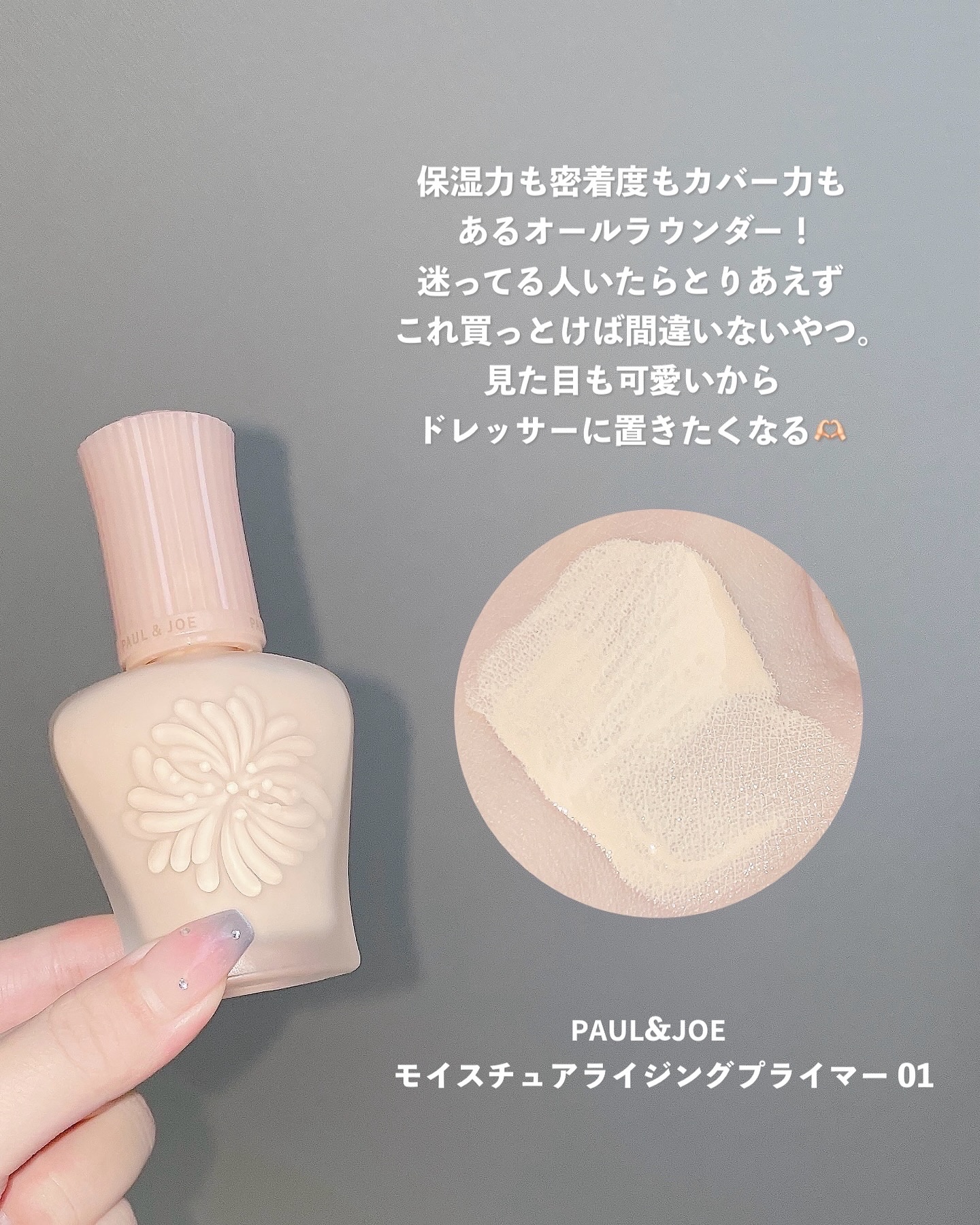 PAUL&JOEのモイスチュアライジングファンデーションプライマー🤍もう何回買ったか数えきれないくらい買ってる下地♡しっとりしてて、乾燥肌の私にもぴったりでどの季節にも使ってるよ!カバー力も高くて、これとパウダーだけでも十分なくらい🥺✨✨容器...