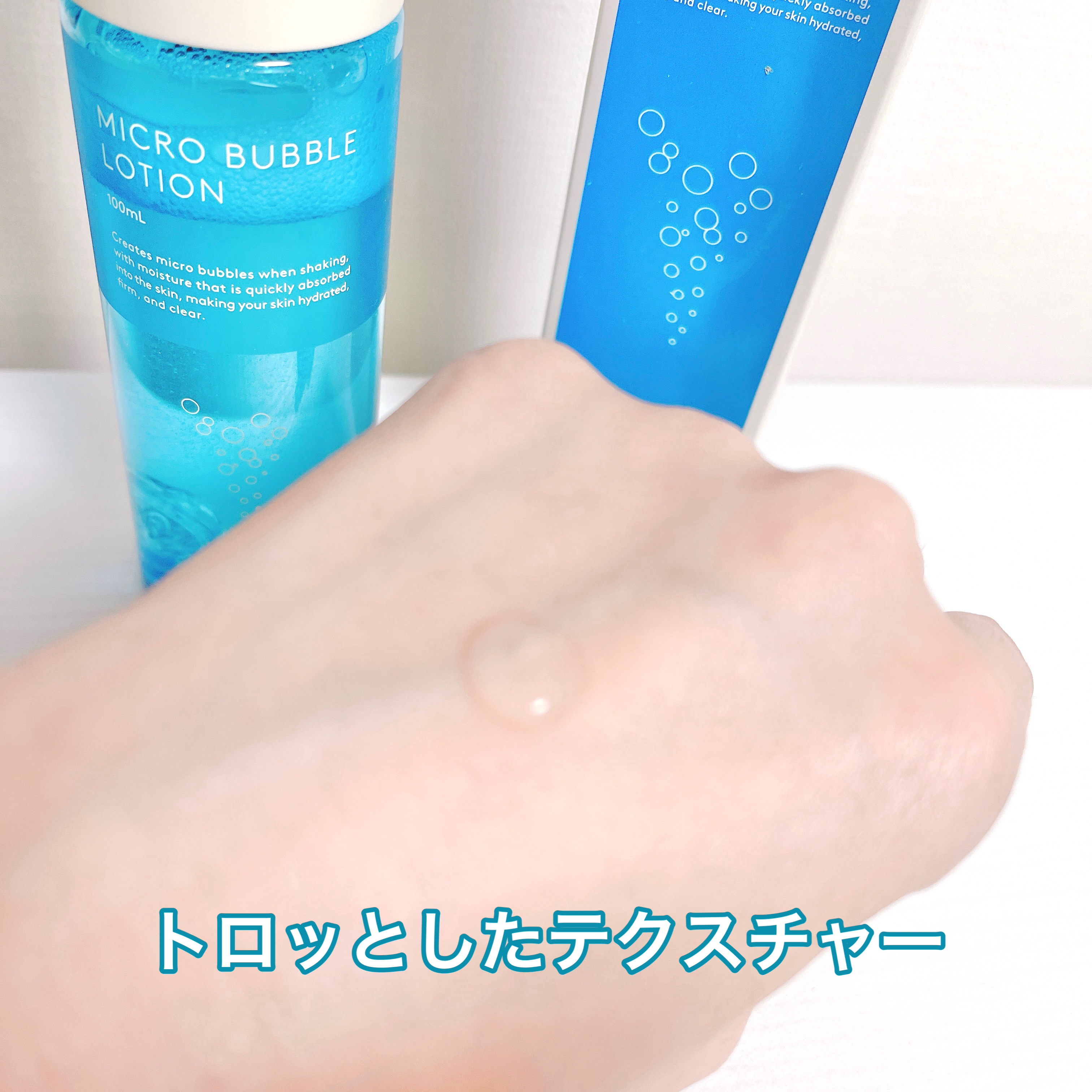 振ってファインバブルを発生させる日本初の化粧水、それが薬用マイクロバブルローション✨ 肌に心地よく馴染みます🌿 2回、3回とたっぷり肌に化粧水をつけてもベタつかず、どんどん吸収していく感じがすごくいいです! 肌荒れなどの抗炎症効果のある有効成分グリチルリチン酸ジカリウムが入っているのも嬉しい♡