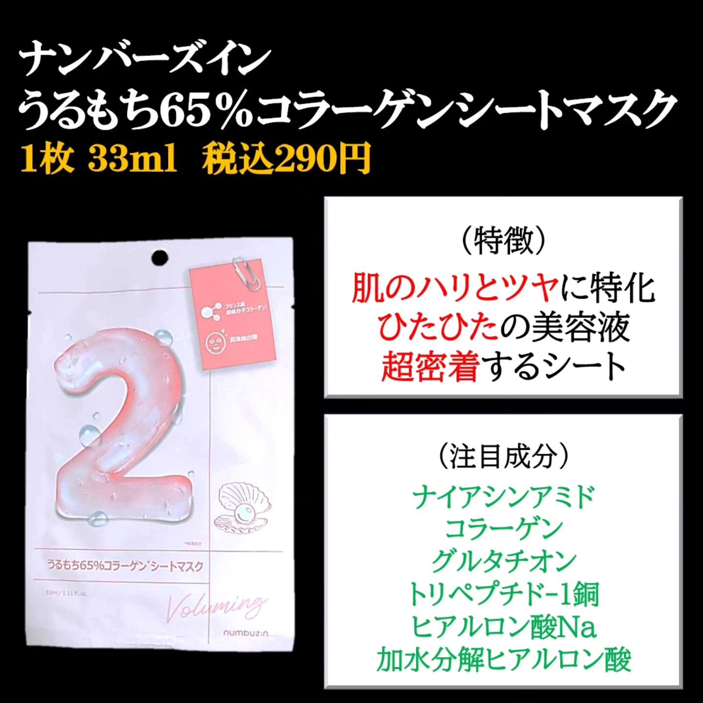 商品詳細情報numbuzin 2番 うるもち65%コラーゲンシートマスク