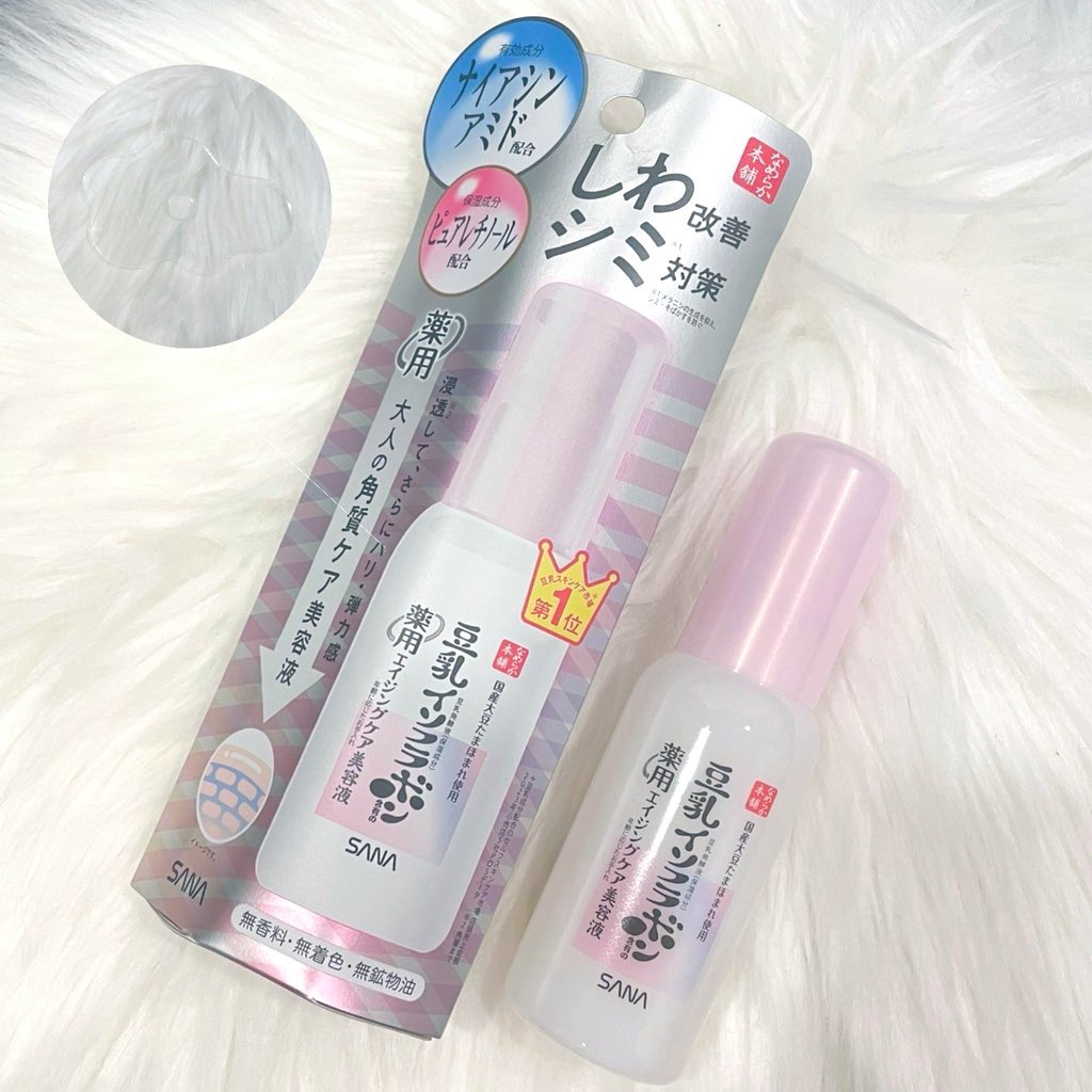 - 【医薬部外品】 浸透*1して、ハリ・弾力感 大人の角質ケア美容液 無香料・無着色・無鉱物油 豆乳発酵液含有の薬用エイジングケア*2美容液 しわ改善&シミ対策できる豆乳の角質ケア美容液 シミ対策:メラニンの生成を抑え、シミ・そばかすを防ぐ 有効成分ナイアシンアミドがお肌の奥まで届く! 角質にアプローチしながら、ハリ・透明感のある素肌へ。 乾燥が気になる大人のお肌に 乳酸(保湿成分):うるおいで角層をやわらかくなめらかに整えます。 豆乳発酵液(保湿成分):弾力感・うるおいを与え、ふっくらとした質感のお肌に。 ピュアレチノール(保湿成分):ビタミンAの一種で、ハリのあるお肌に。 ナイアシンアミド(有効成分):しわを改善し、メラニンの生成を抑え、シミ・そばかすを防ぎます。 ごわつきが気になるときに・・・コットン使い! 洗顔後、化粧水の前にコットンに適量(3プッシュ程度)をとり、お顔全体にやさしくくるくると広げてなじませてください。 つるんとハリ・透明感! 国産丸大豆「たまほまれ」使用 なめらか本舗「エイジングケアライン」オリジナルの豆乳発酵液(保湿成分)は、国内で栽培された大豆「たまほまれ」を丸ごと使用して作られています。 なめらか濃縮製法でつくるオリジナルの豆乳発酵液 豆乳発酵液に使用している大豆は、遺伝子組換えなし大豆を使用しています。 ●パッチテスト済み ●アレルギーテスト済み (すべての方に皮フ刺激やアレルギーが起きないわけではありません。) *1角層まで *2年齢に応じたお手入れ