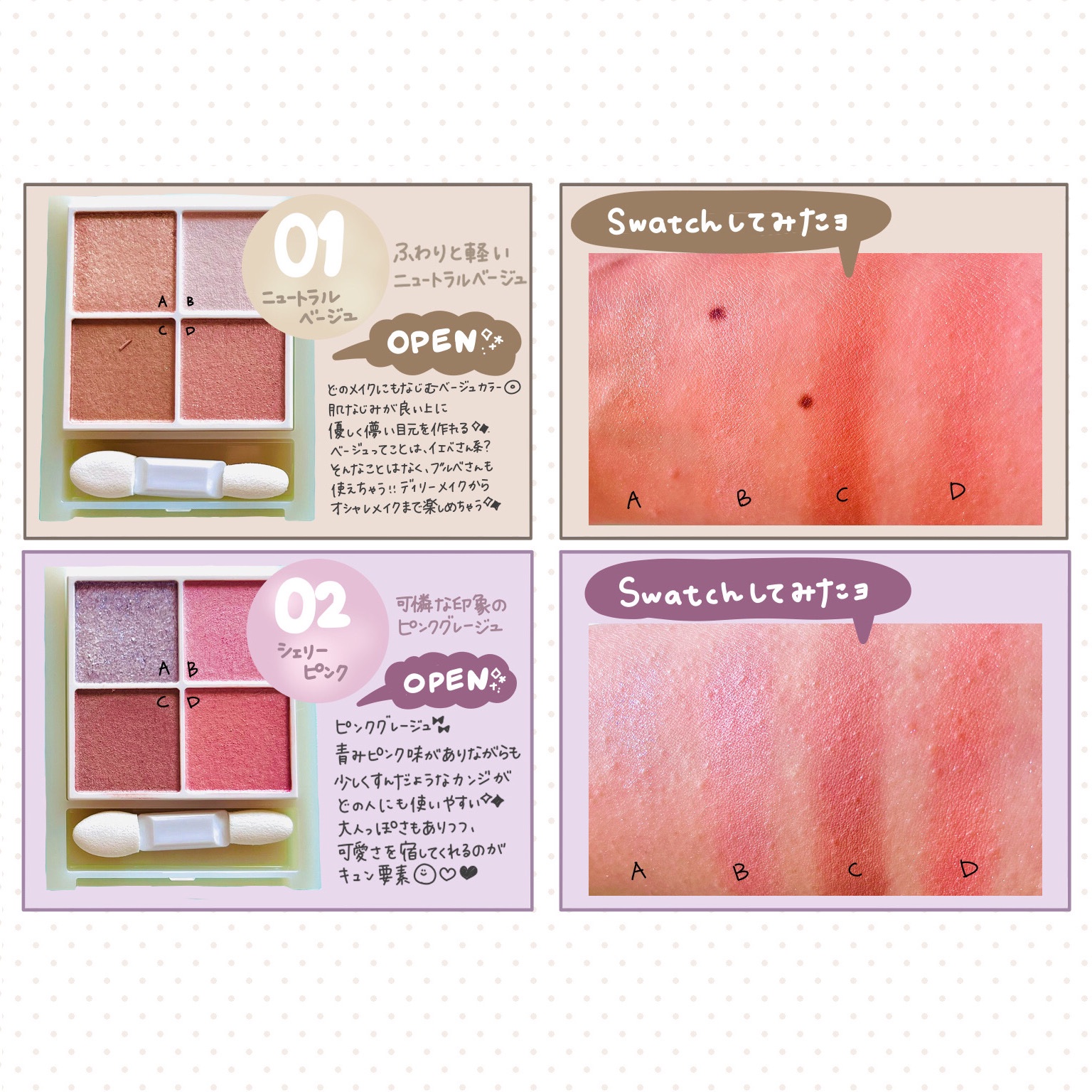 - 淡色グラデでソフトな陰影を作る4色アイシャドウ。