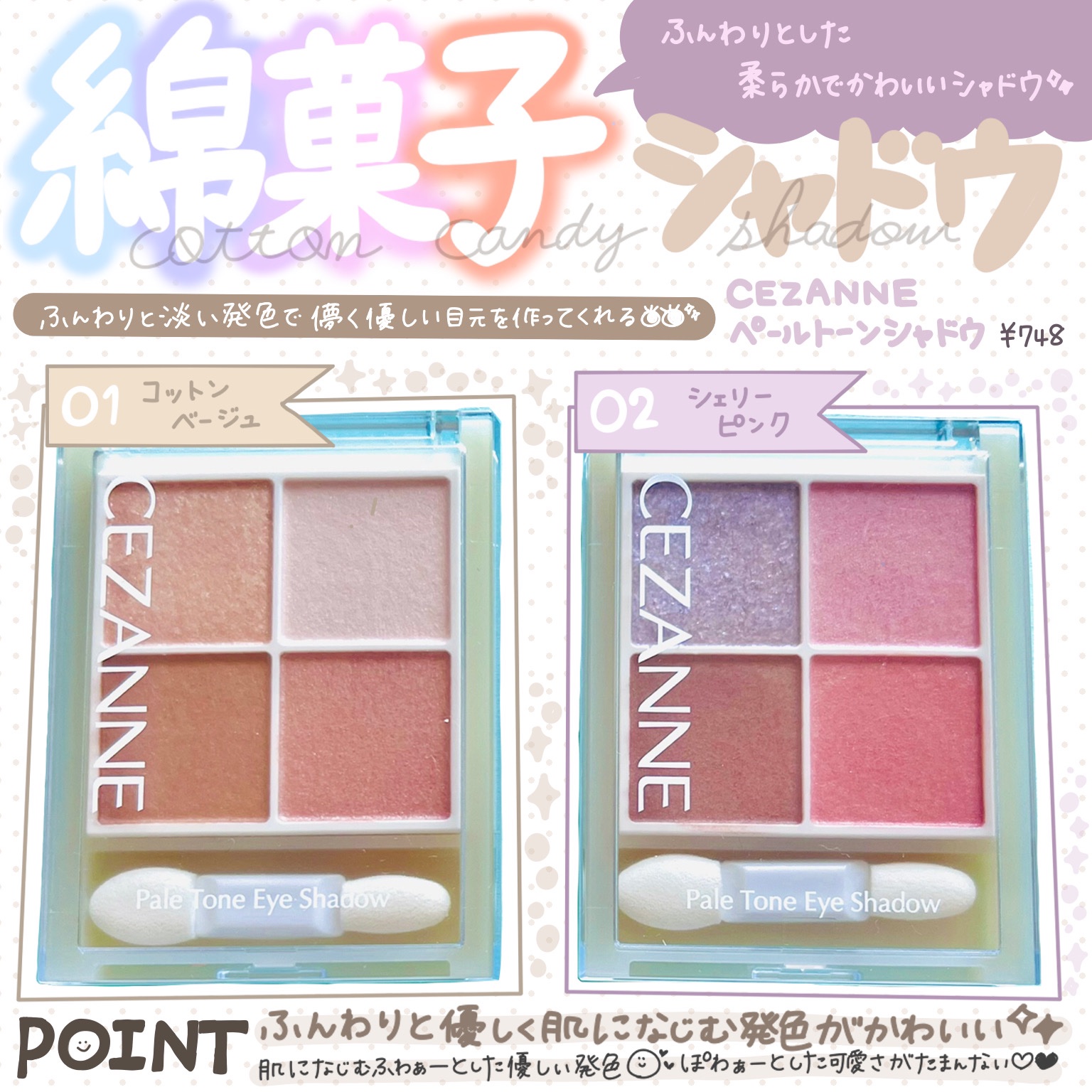 【CEZANNEペールトーンアイシャドウ】儚げアイシャドウ🎀CEZANNEペールトーンアイシャドウ¥74801コットンベージュ優しすぎて消えてしまいそうな雰囲気のあるベージュシャドウ02シェリーピンク儚すぎるまるで夢の中を表現したようなピンク...