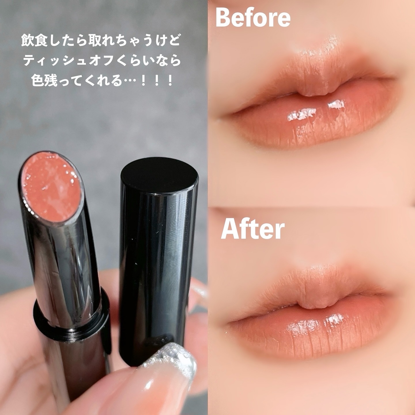 これ、最初塗った時は普通のティントとあんま違い分かんないな…って思いました が、数分経ってから見たらびっくり。 とにかくツヤがすっっごい綺麗。 唇に膜が張ったようにちゅるんっとします。 ツヤリップ好きの私大歓喜。 個人的には04のモーヴピンクが好き。 大人っぽくて1番唇を綺麗に見せてくれる色な気がします!