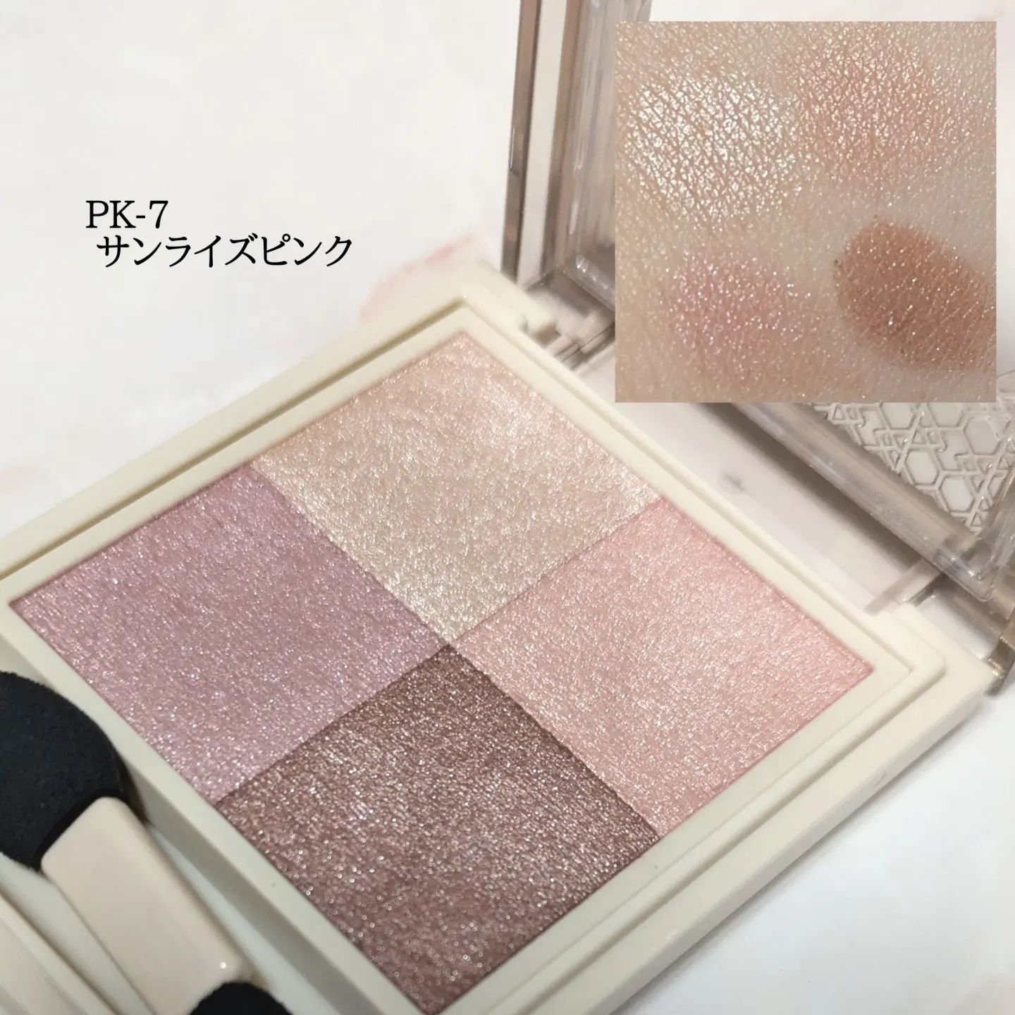 水面シャドウとして人気になったアイパレ。既存色で『ノーブルピンク』がありましたが、青みがあまりなくてニュートラルなピンク。 それに比べ、この『サンライズピンク』はやや青みのあるブルベ向けピンク🩷 やっぱりツヤ感と透明感はキレイなアイシャドウです💓